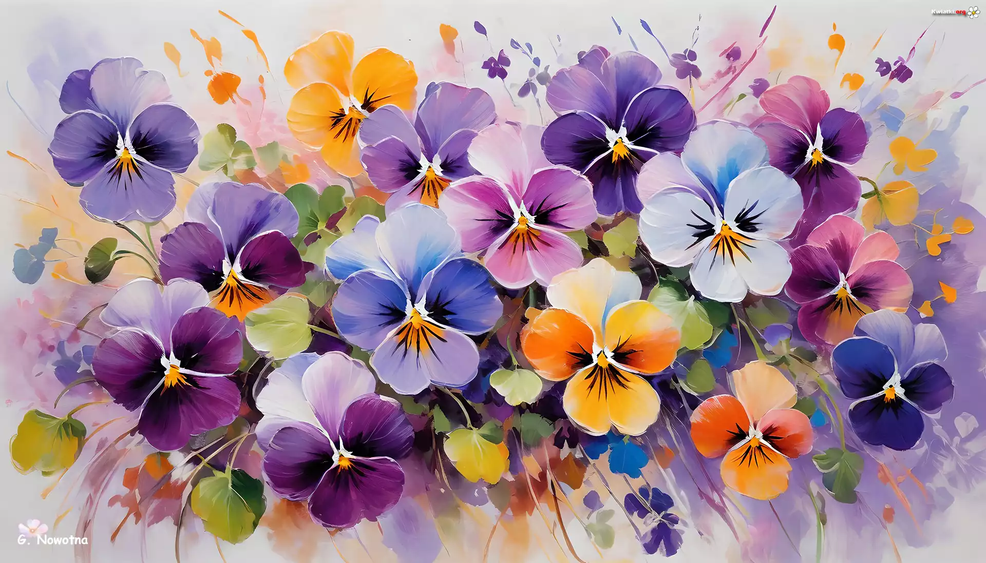 Bratki, Kolorowe, Kwiaty, Grafika, Obrazy - Zdjęcia