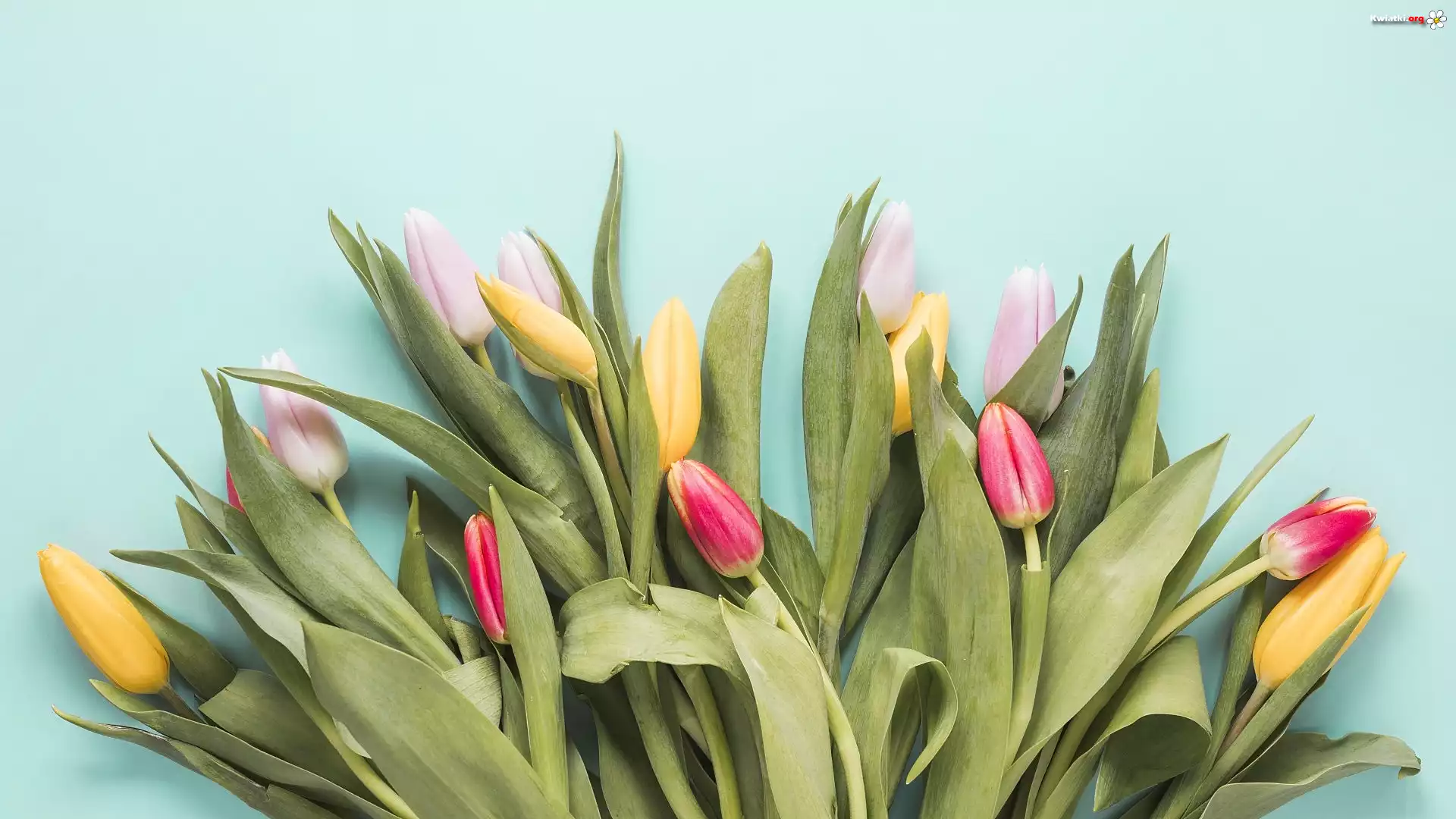 Kwiat Kolorowe, Tulipany, Bukiet, Niebieskie, Tło