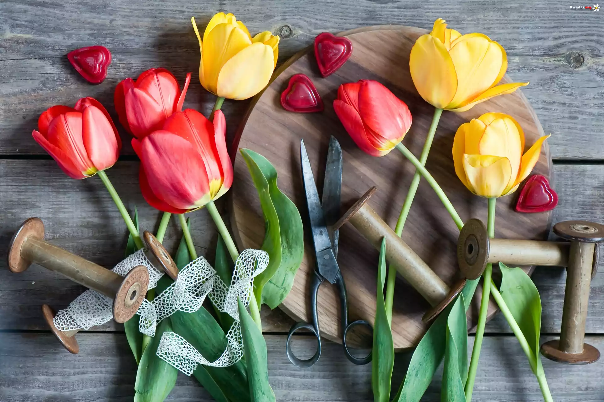 Kolorowe, Tulipany, Nożyczki, Kompozycja - Zdjęcia