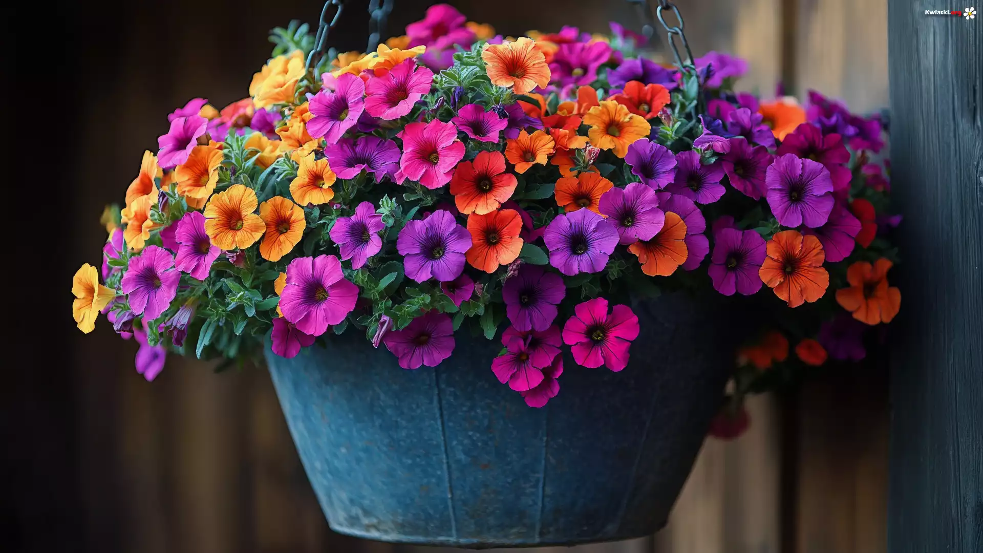 Kwiaty, Kolorowe, Petunie, Wisząca, Doniczka - Zdjęcia