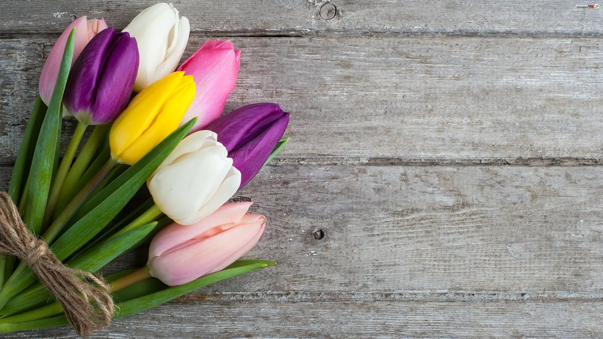 Kolorowe, Tulipany, Sznurek, Deski - Zdjęcia