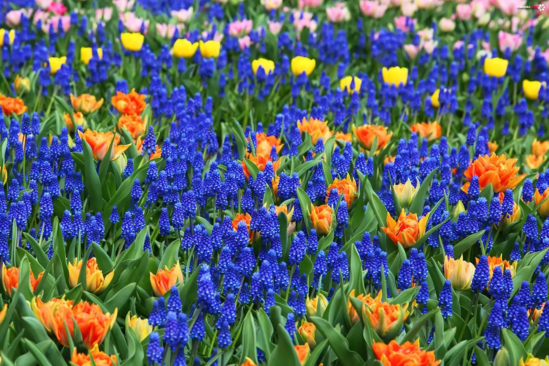 Kwiat Kolorowe, Kwiaty, Tulipany, Szafirki