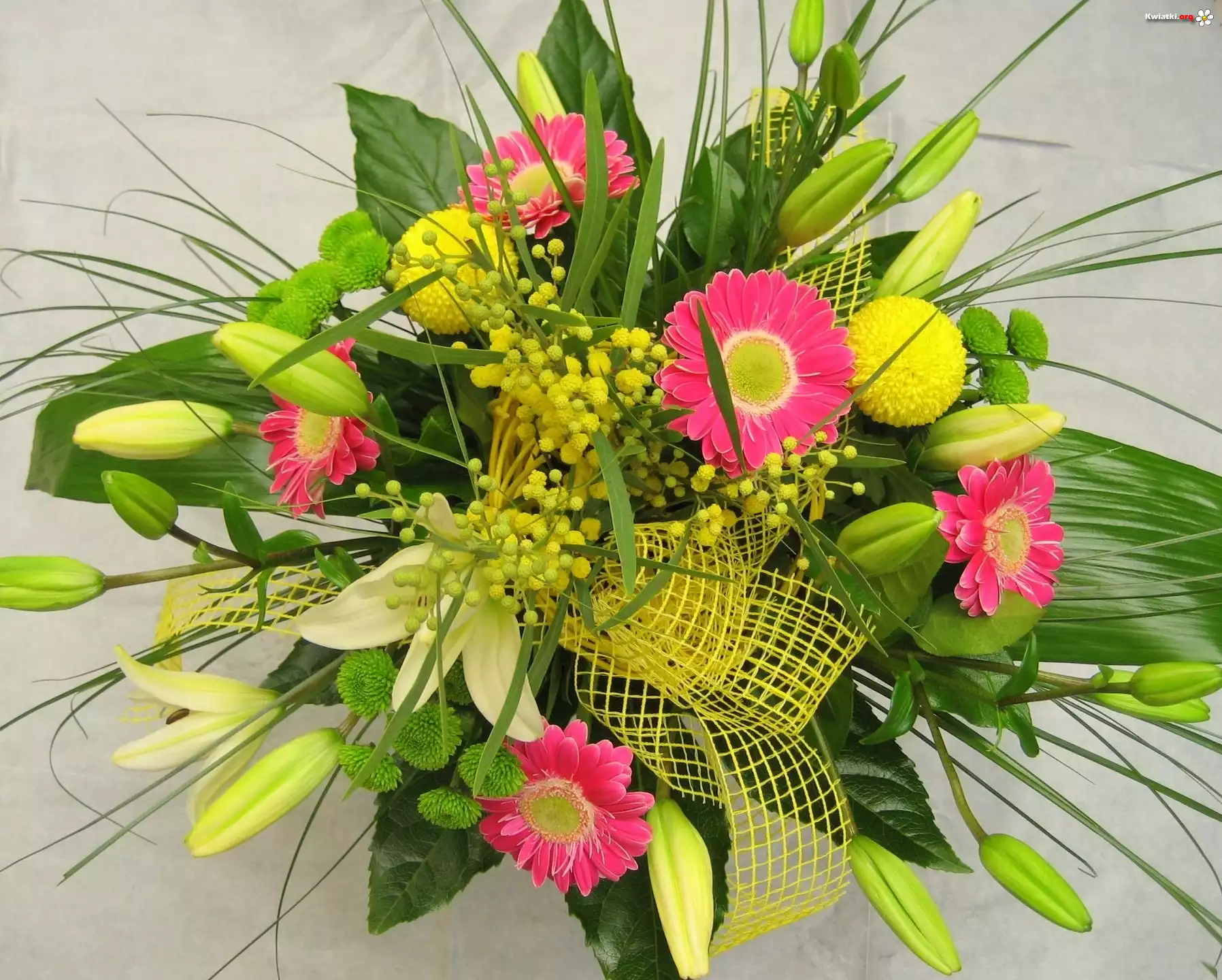 Kwiat Kolorowy, Bukiet, Gerbery, Lilie