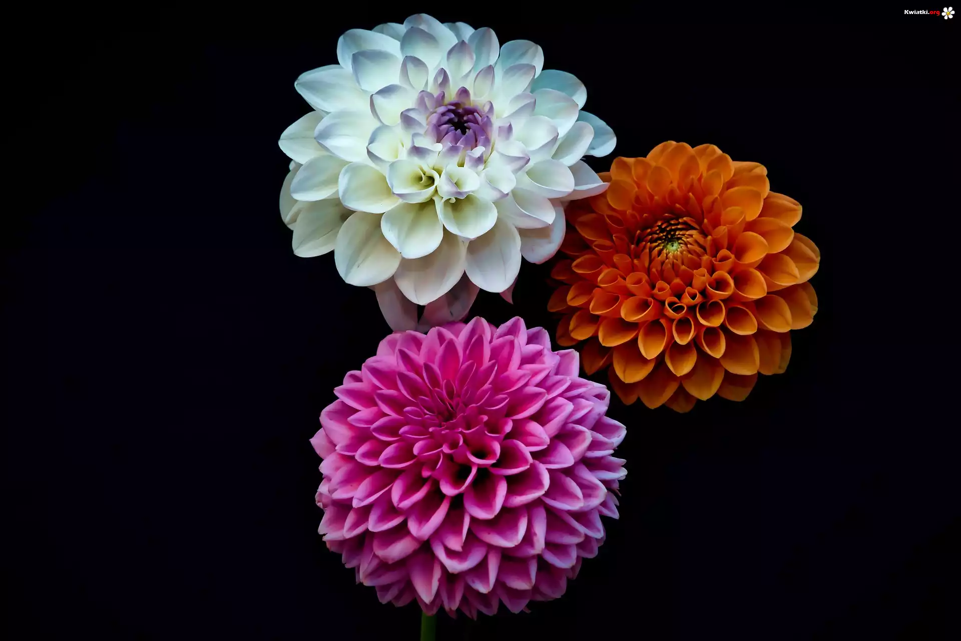 Kwiaty, Dalie, Trzy, Kolorowy, Ciemny, Tło - Zdjęcia