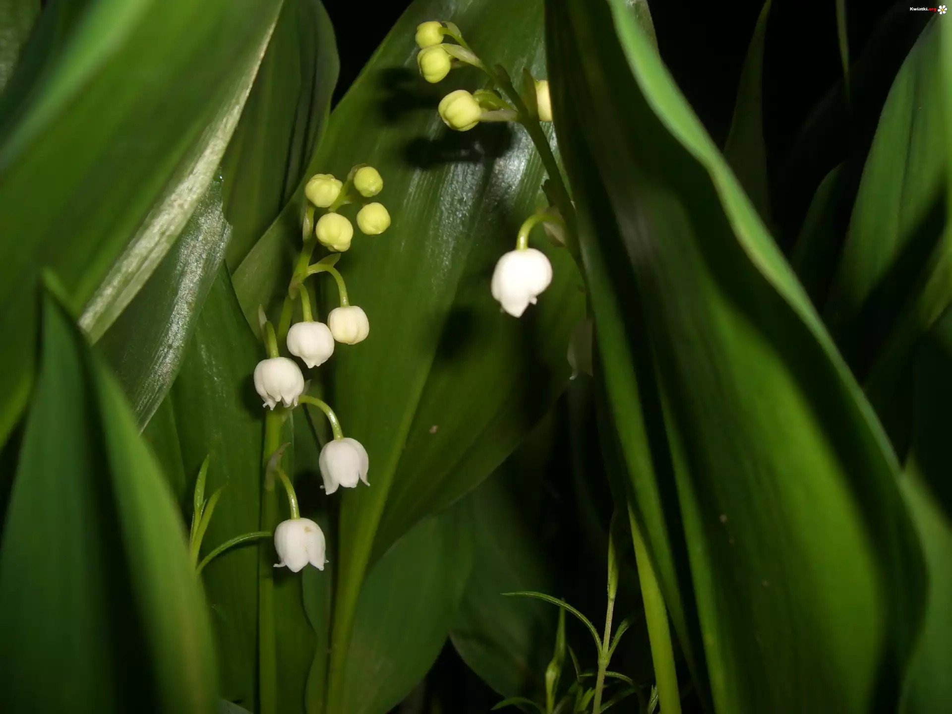 Kwiat Konwalia, Białe, Kwiatki, Liście