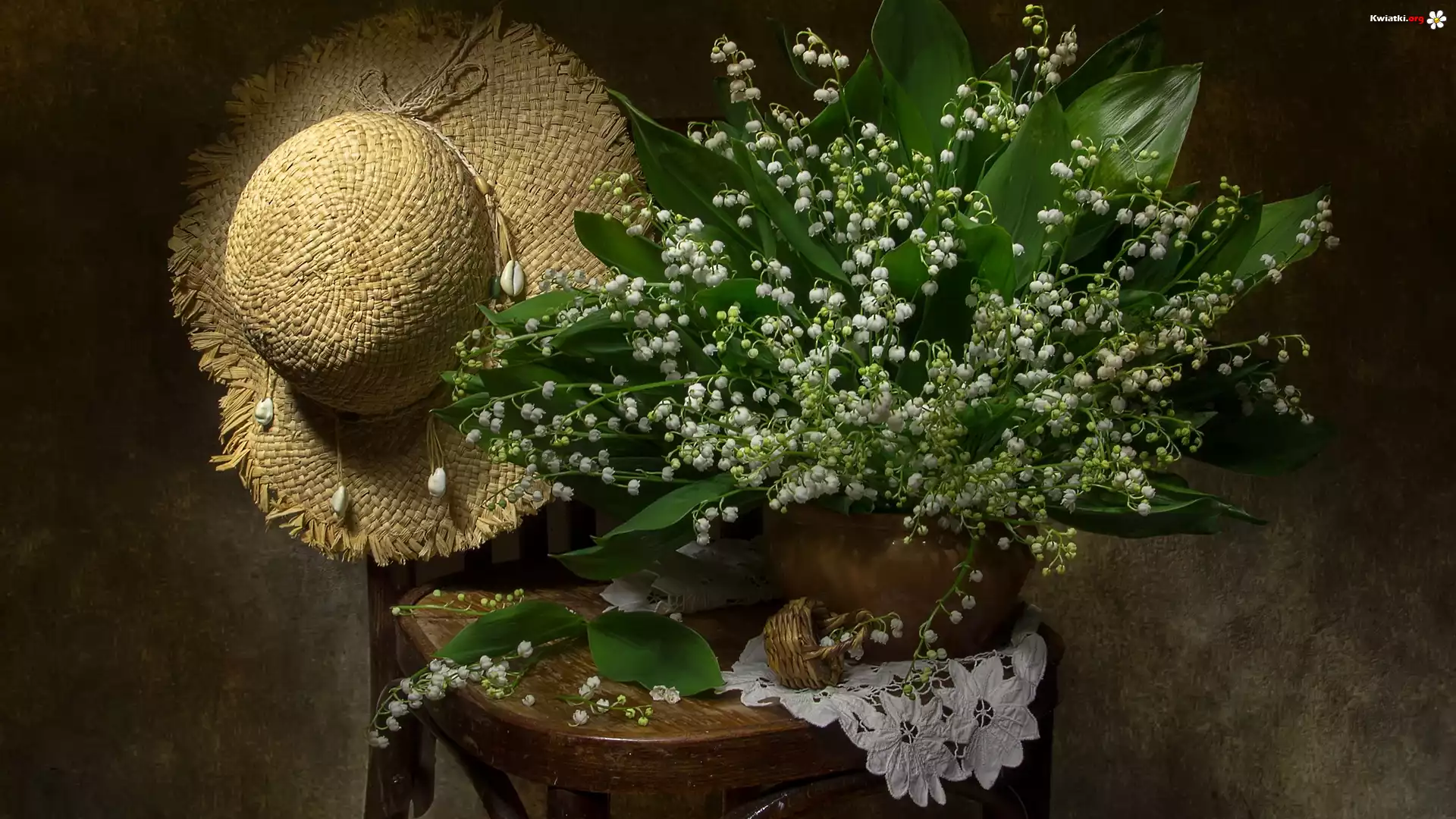 Konwalie majowe, Kapelusz, Krzesło - Zdjęcia