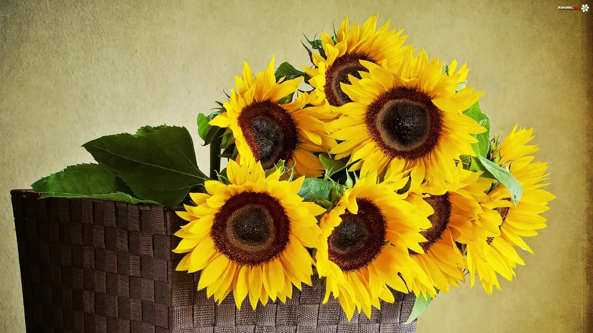 Kwiat Kosz, Słoneczniki, Brązowe, Tło