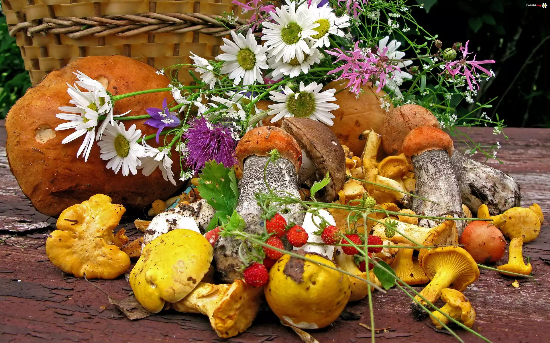 Grzyby, Kosz, Kwiaty - Zdjęcia