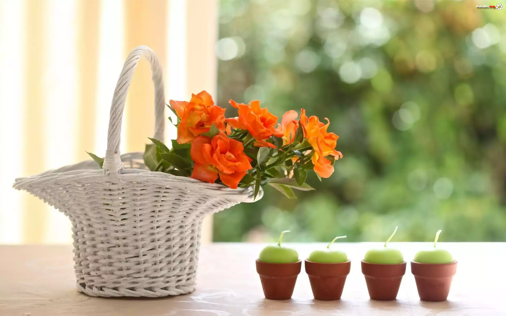Koszyczek, Bukiet, Róż, Cztery, Świeczki, Dekoracja - Zdjęcia