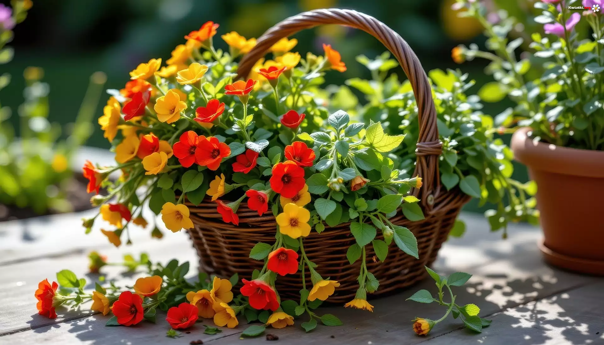 Kwiaty, Koszyk, Grafika AI, Nasturcje - Zdjęcia