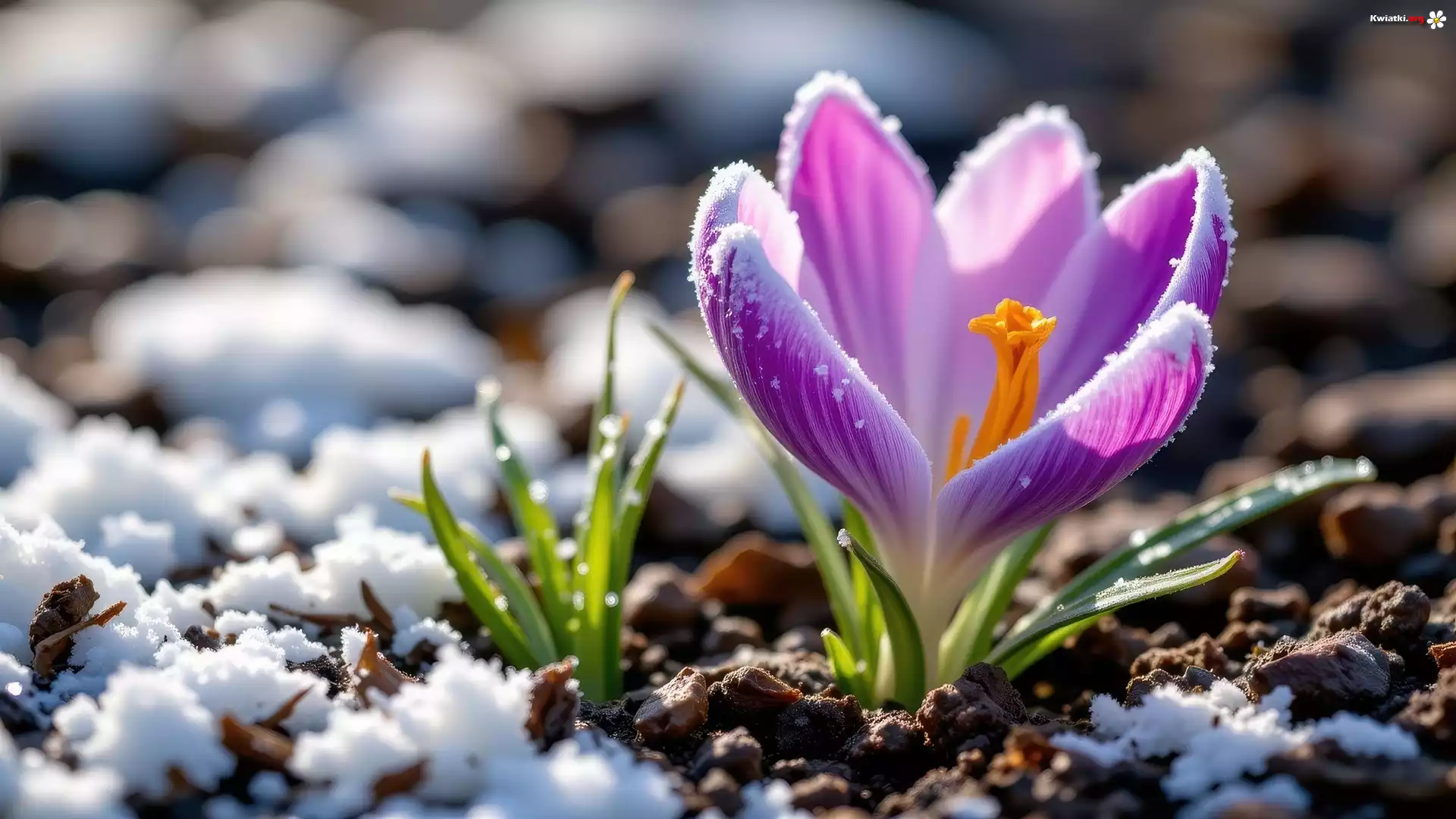 Kwiat Śnieg, Ośnieżony, Fioletowy, Krokus, Zielone, Listki