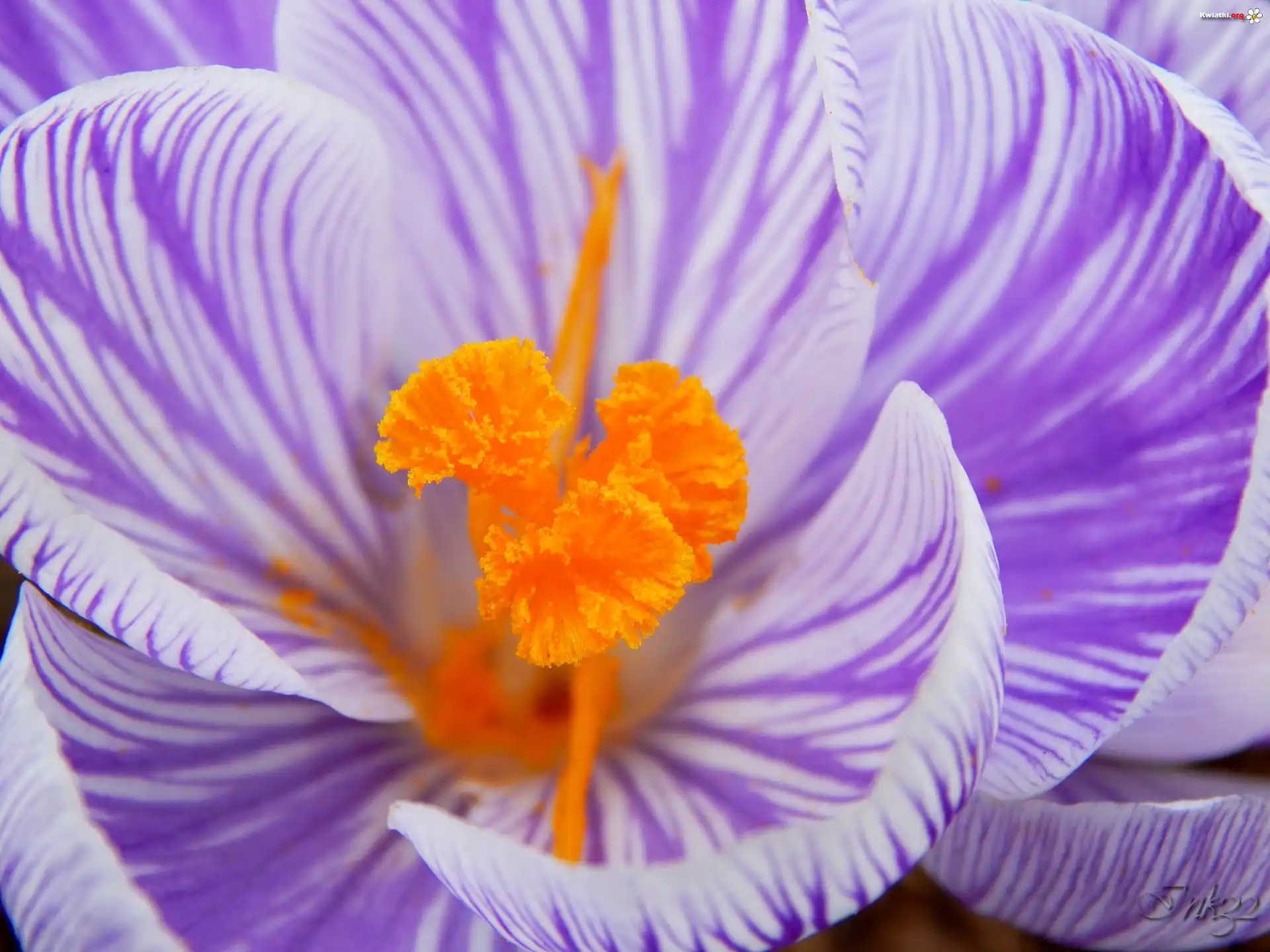 Kwiat Krokus, Fioletowe, Paski, Pręciki