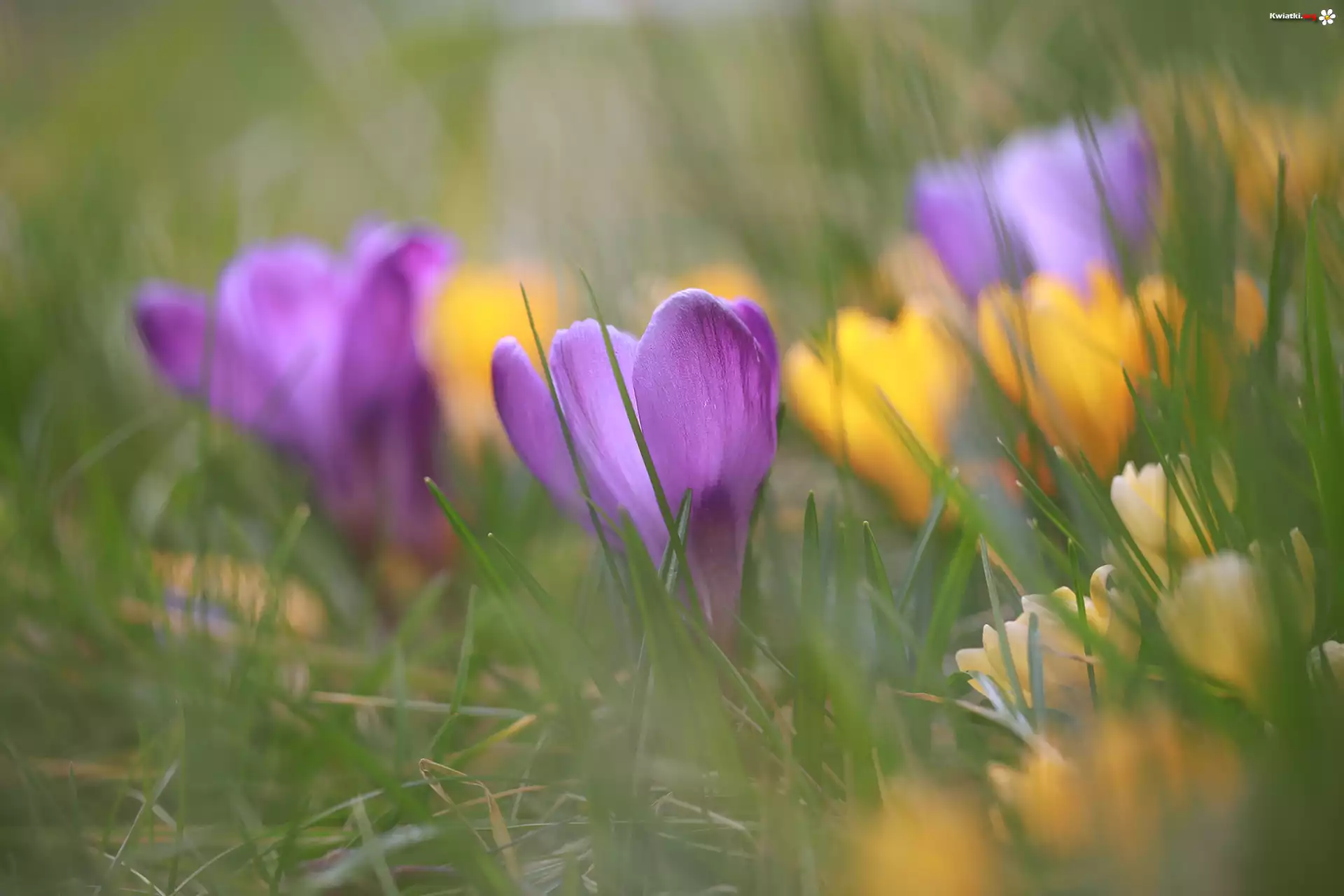 Fioletowy, Krokus, Rozmyte, Krokusy, Żółte - Zdjęcia