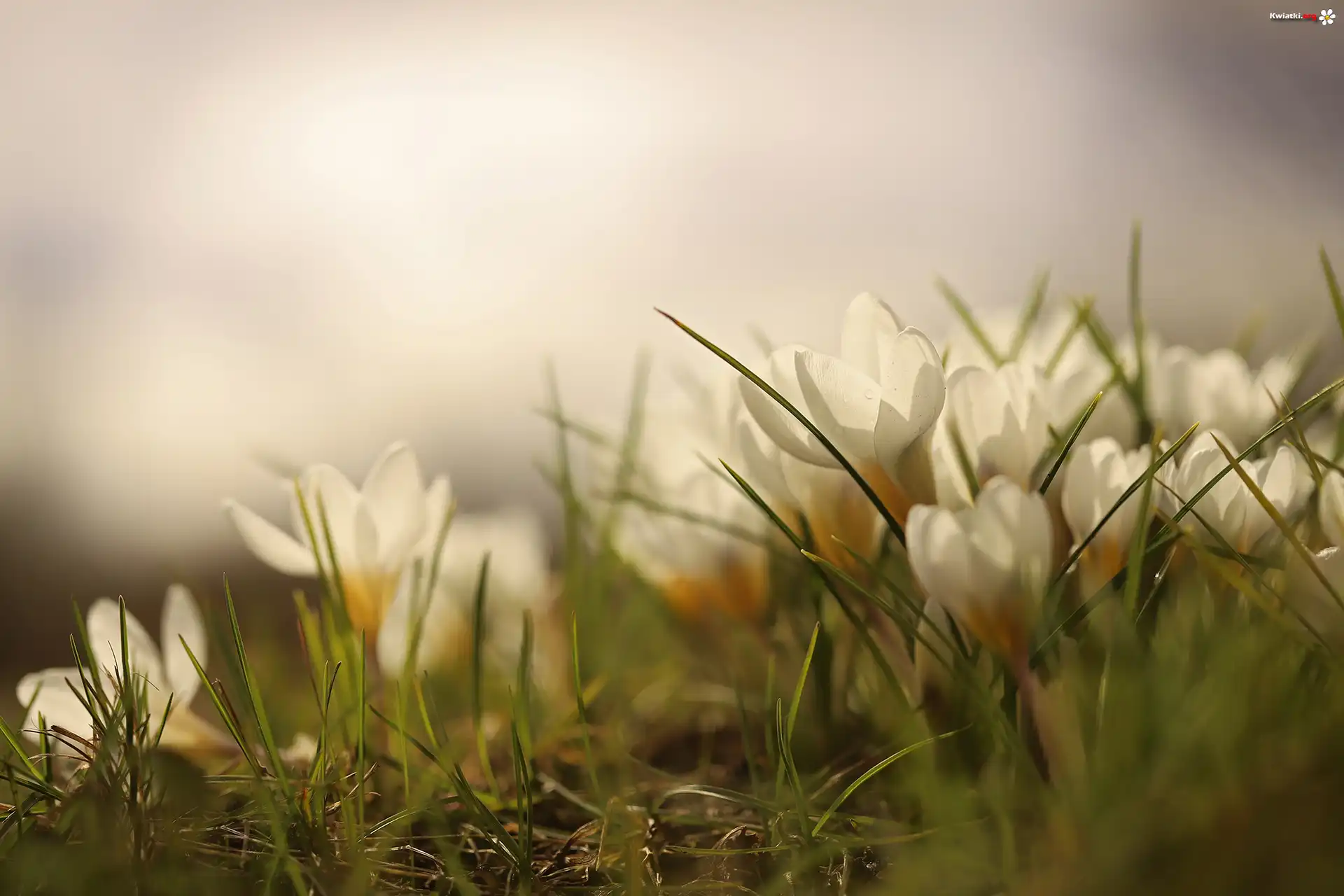Krokusy, Białe, Kwiaty, Zbliżenie - Zdjęcia