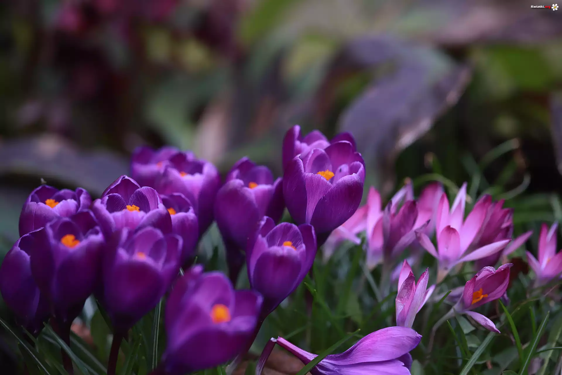 Fioletowe, Krokusy, Kwiaty. Pomarańczowe, Pręciki - Zdjęcia
