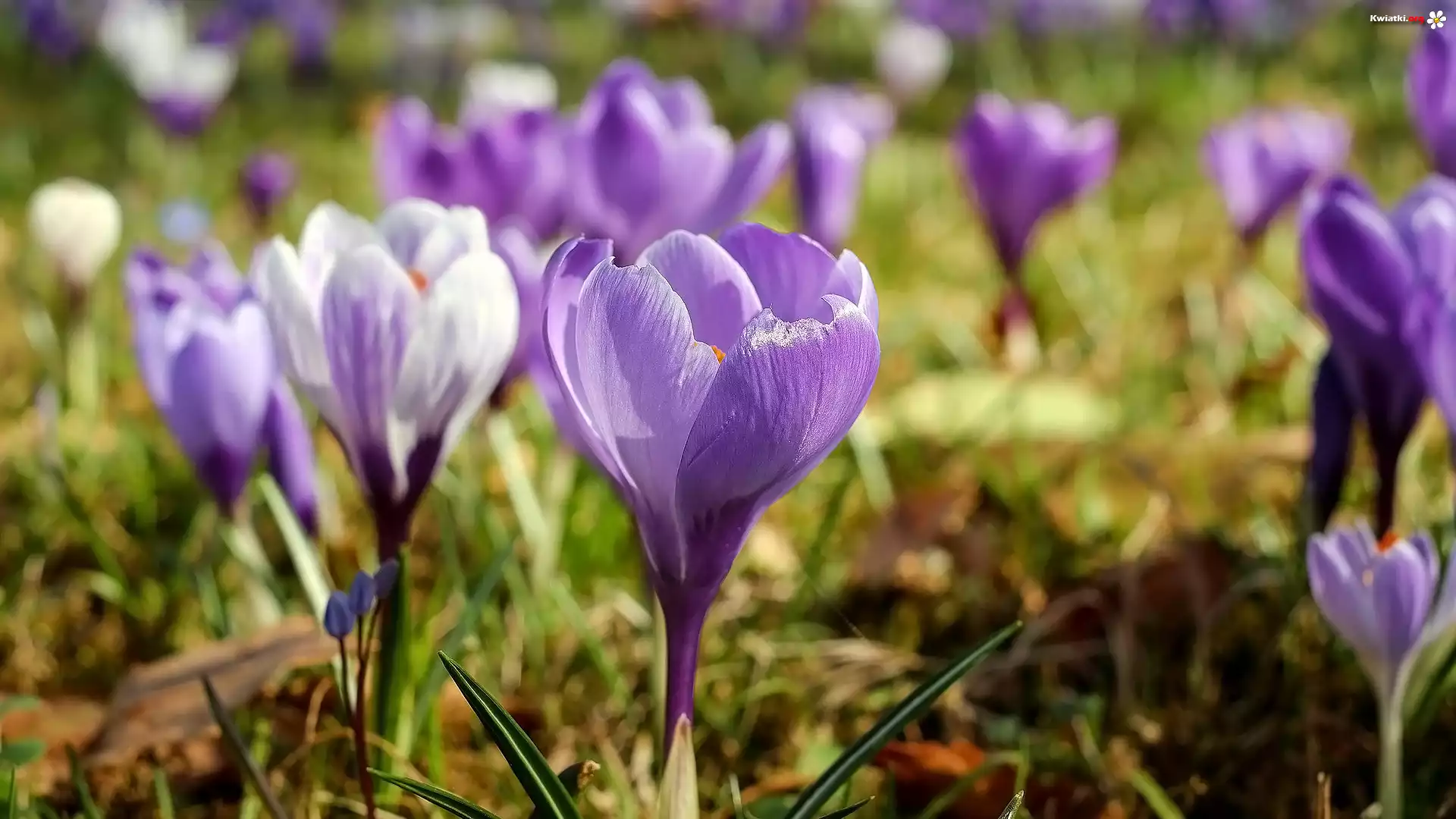 Kwiaty, Krokusy, Rozświetlone - Zdjęcia