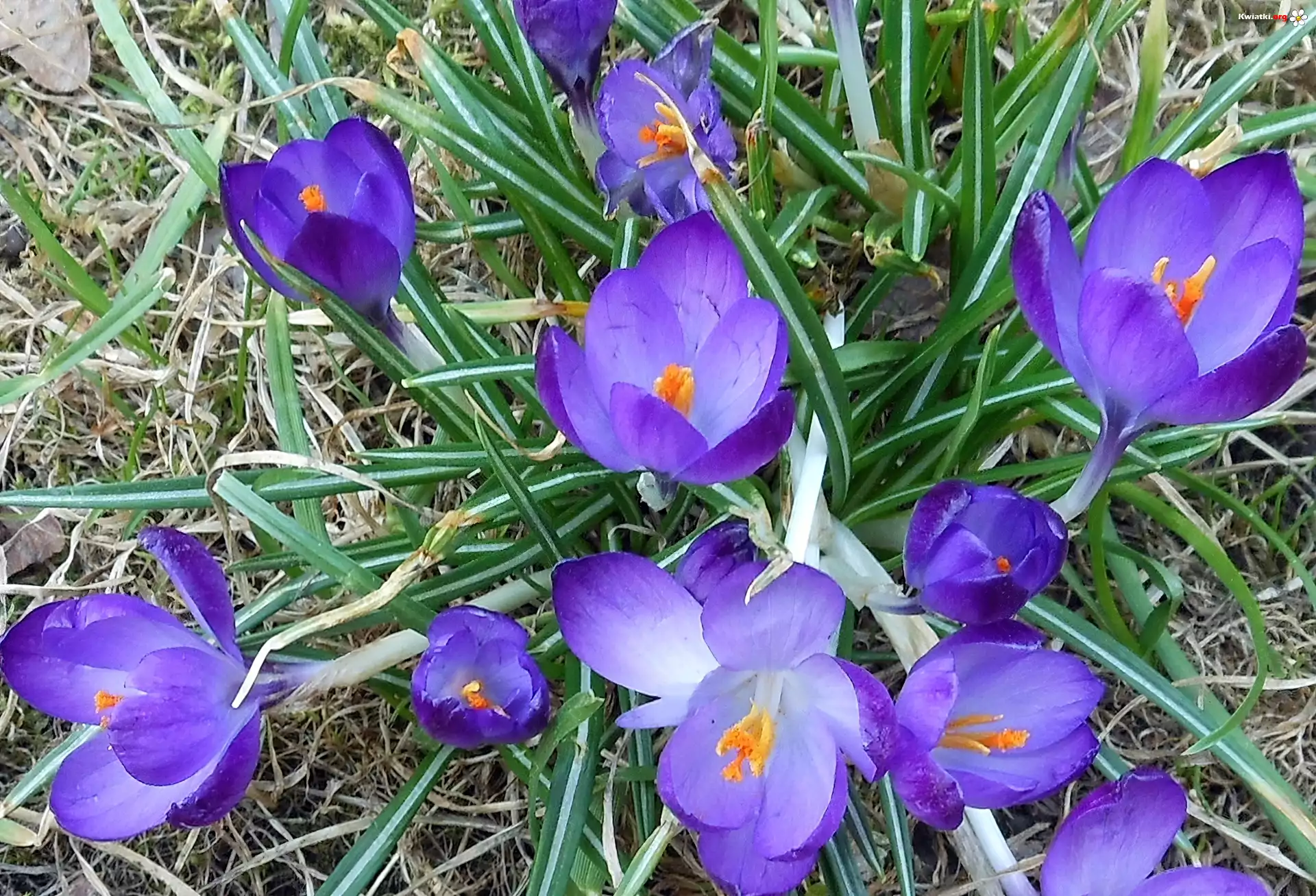 Modrakowe, Krokusy, Trawnik - Zdjęcia