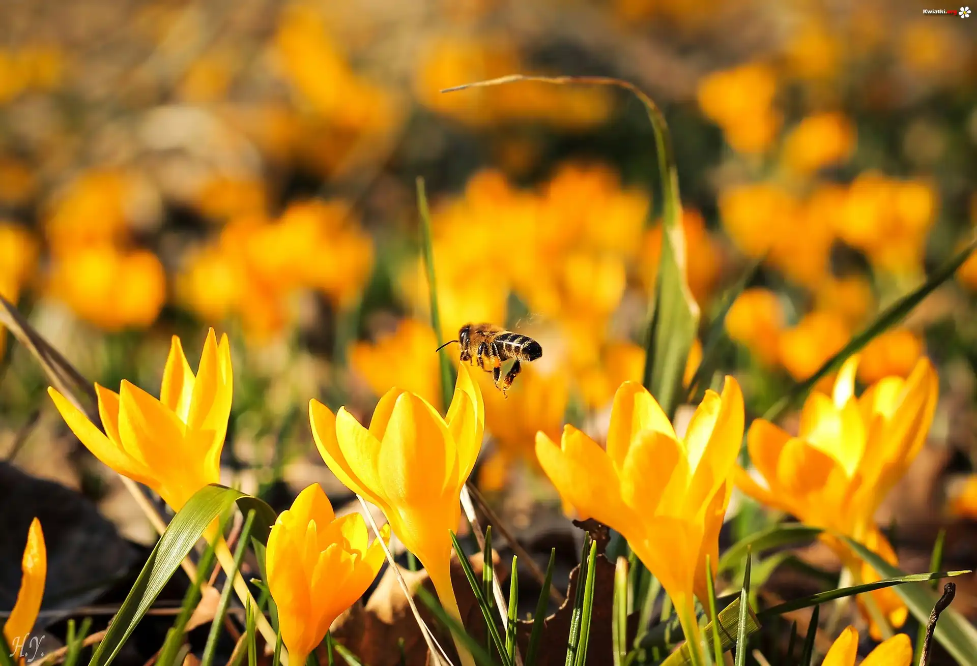 Żółte, Krokusy, Pszczoła - Zdjęcia