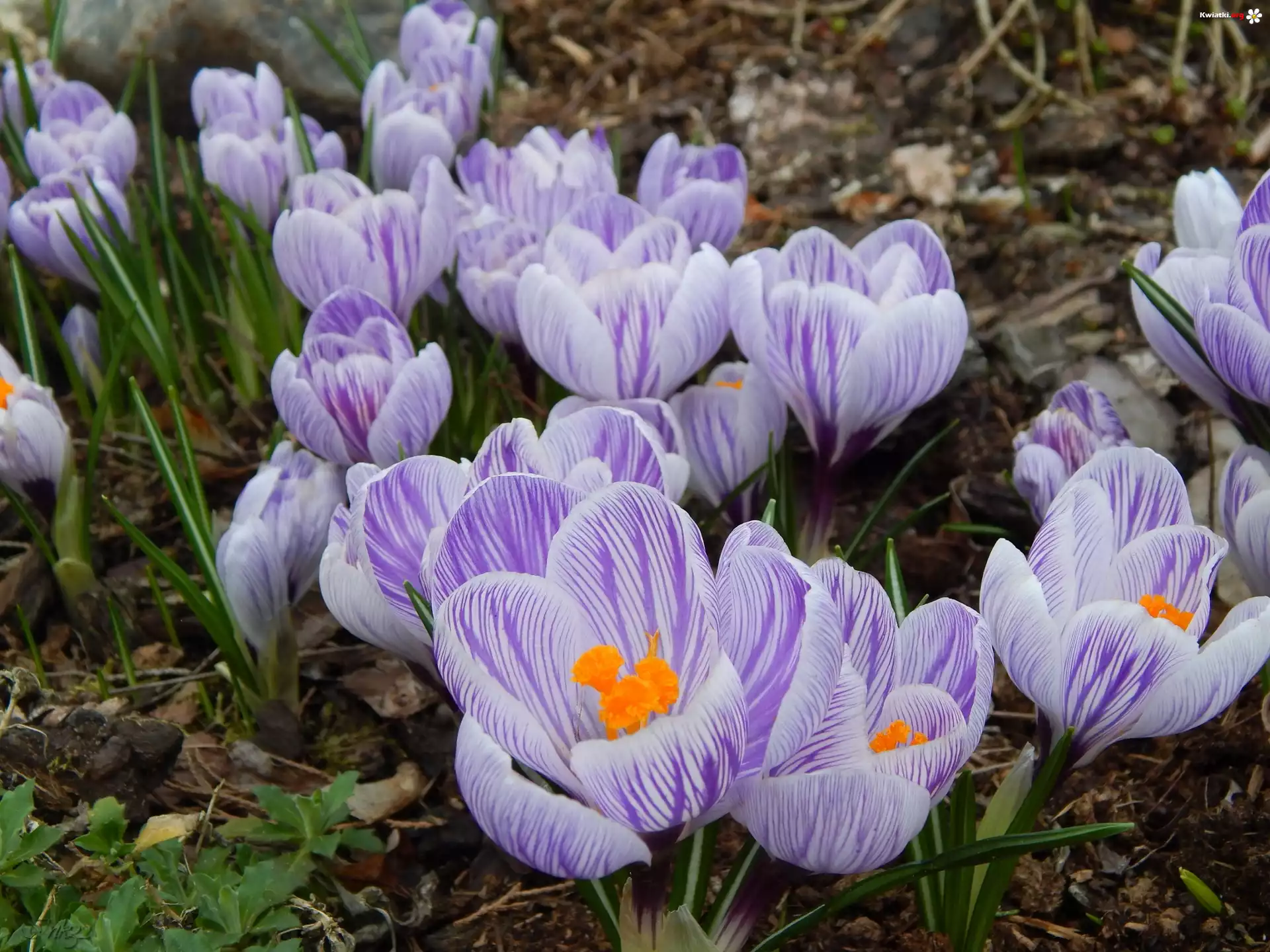 Kwiat Krokusy, Fioletowe, Paski, Wiosna