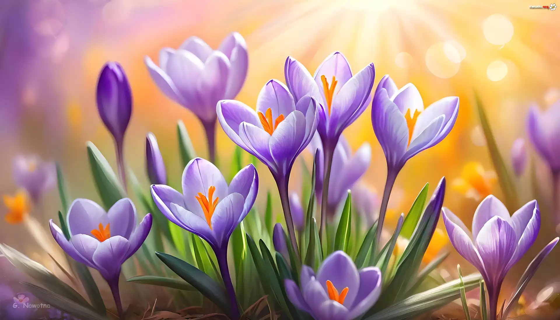 Fioletowe, Krokusy, Rozświetlone, Kwiaty, Grafika - Zdjęcia
