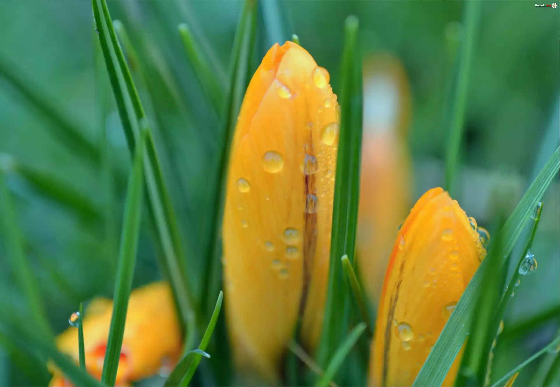 Żółte, Krokusy, Wiosna, Krople, Rosy - Zdjęcia