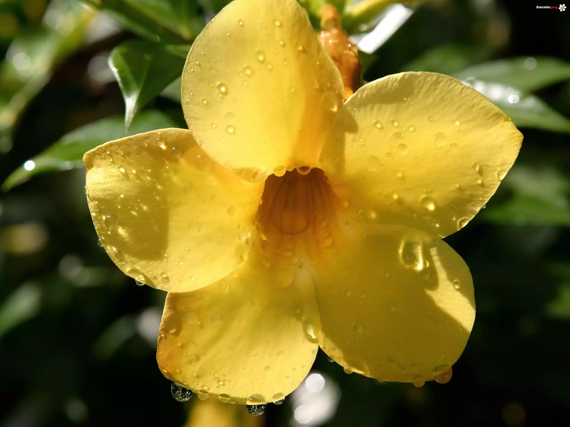 Kwiat Żółty, Kwiatuszek, Krople, Wody