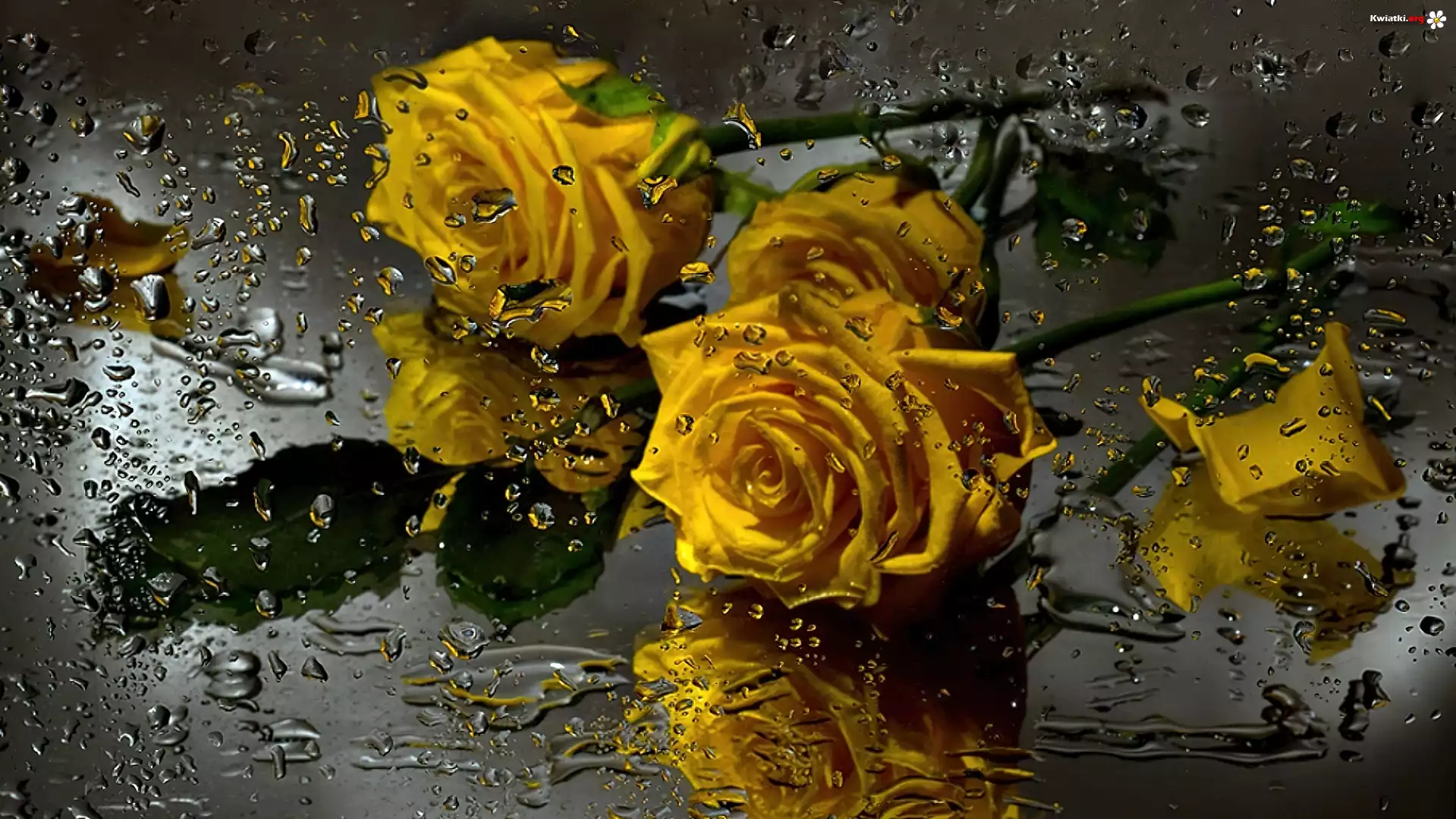 Żółte, Róże, Krople, Deszczu - Zdjęcia