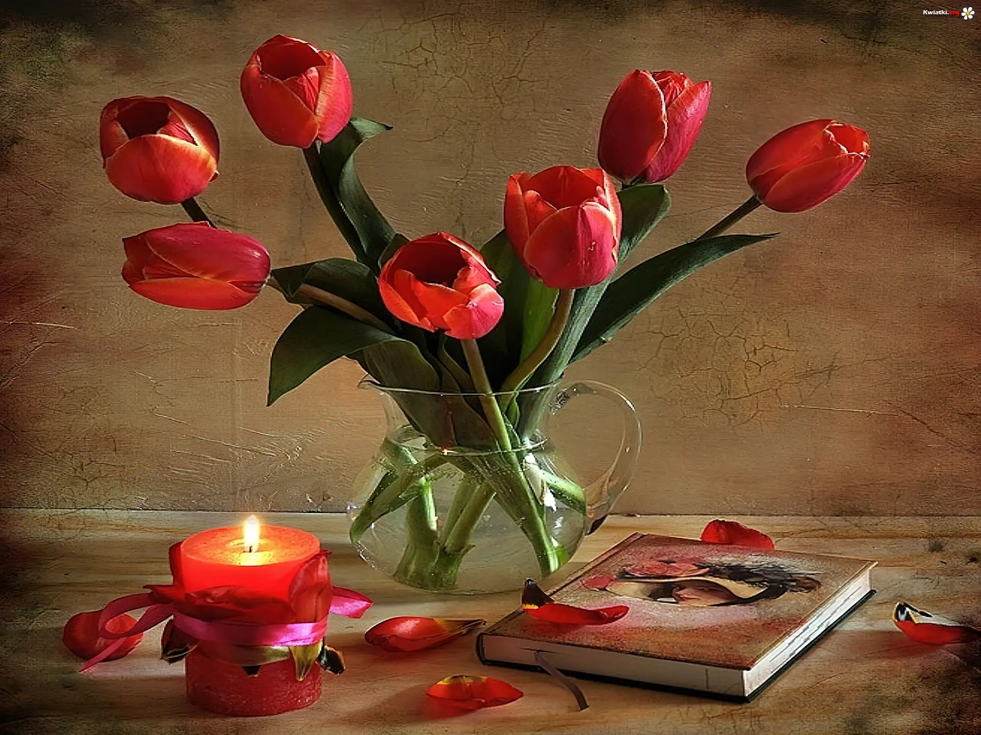 Tulipany, Książka, Świeczka - Zdjęcia