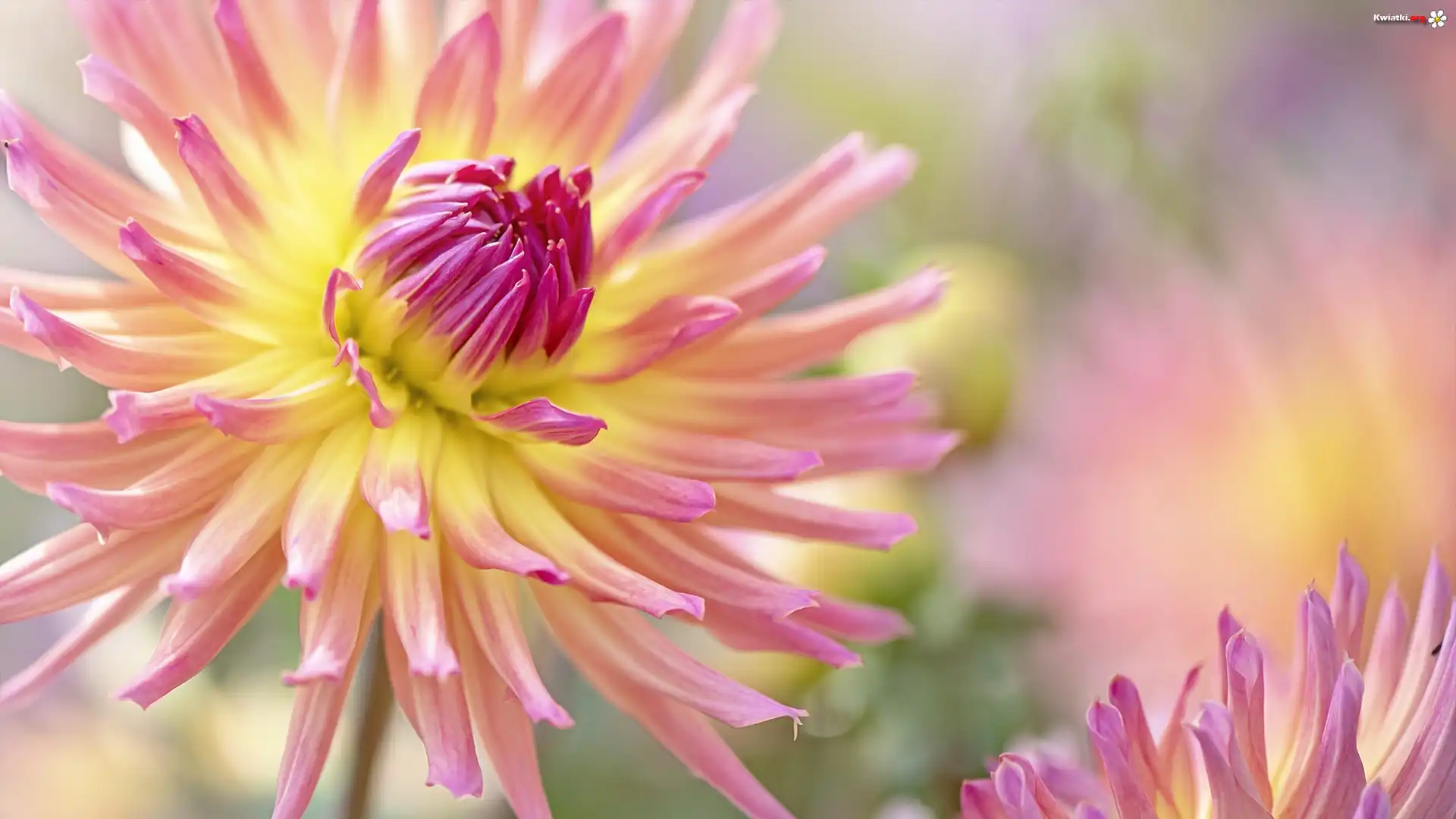 Kwiat, Różowo-żółta, Dalia, Zbliżenie - Zdjęcia