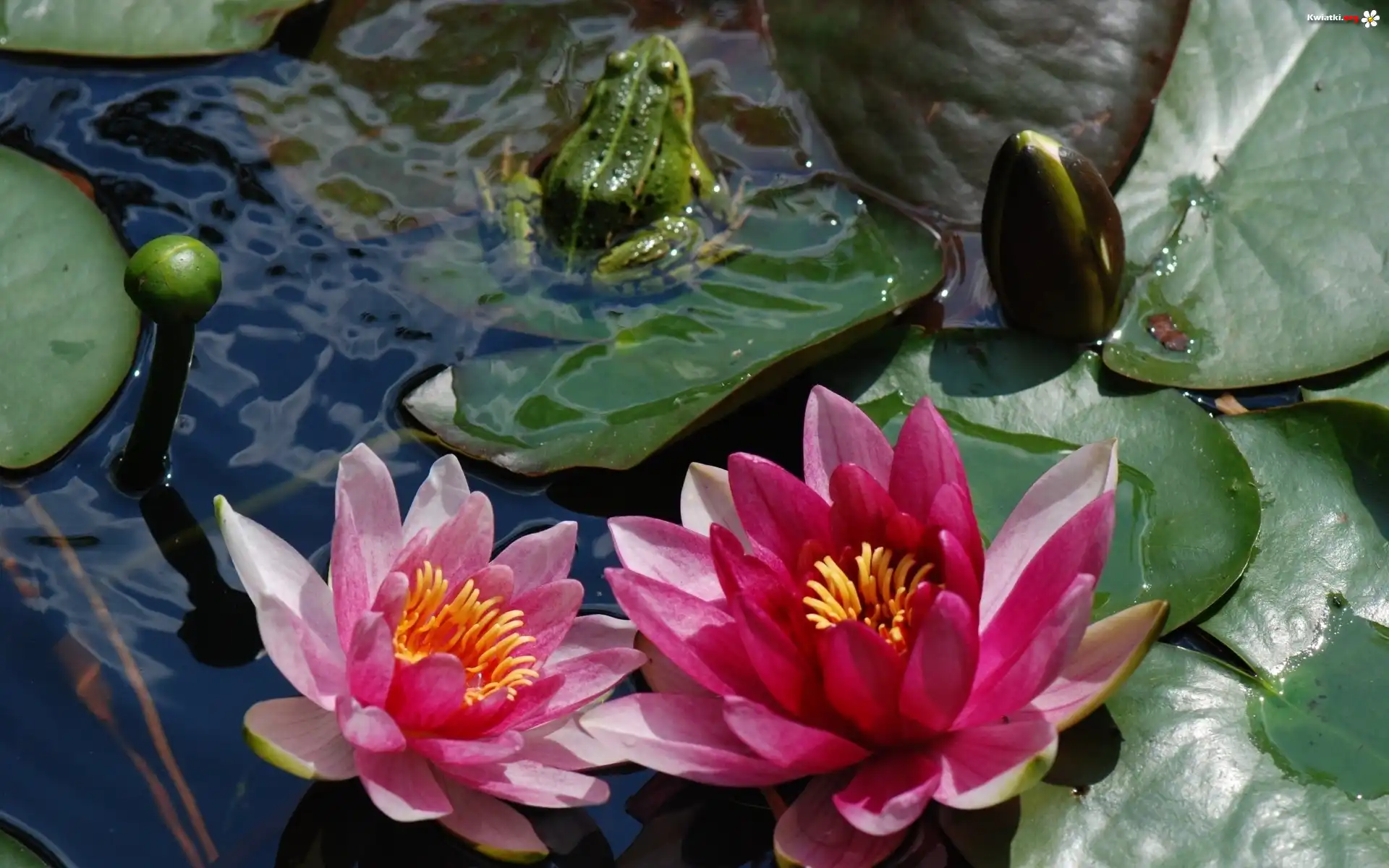 Kwiat, Żaba, Lilia wodna - Zdjęcia