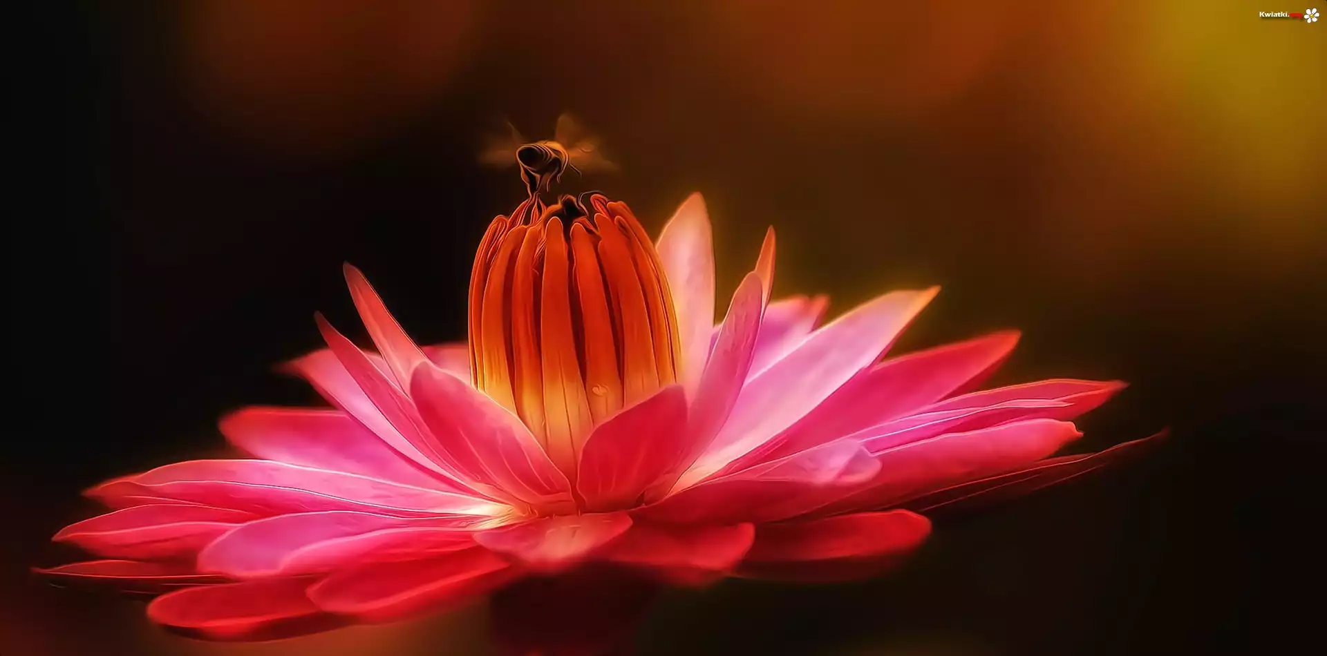 Kwiat, Pszczoła, Makro, Lilia wodna - Zdjęcia