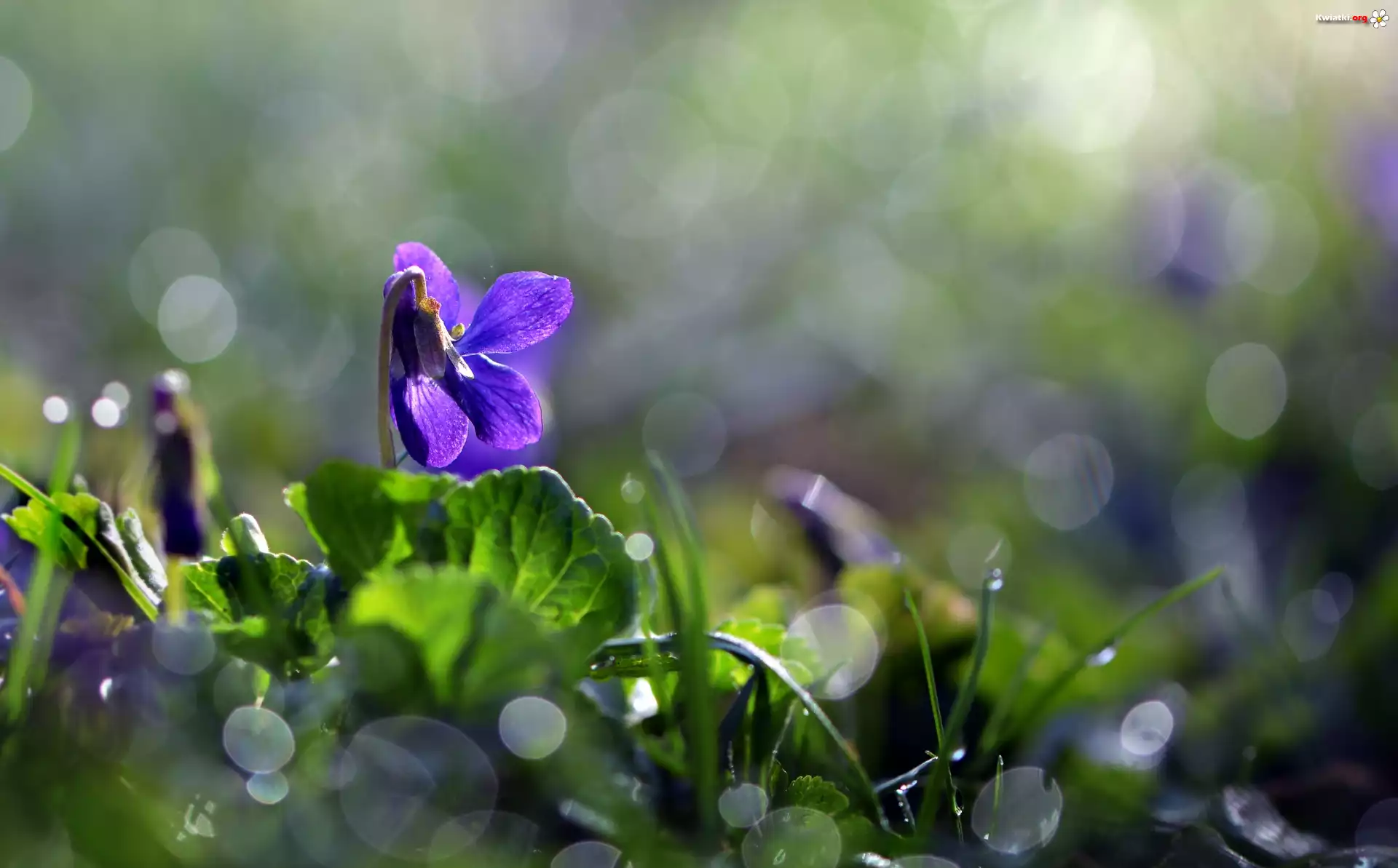 Kwiat Kwiat, Fiołek wonny, Liście, Trawa