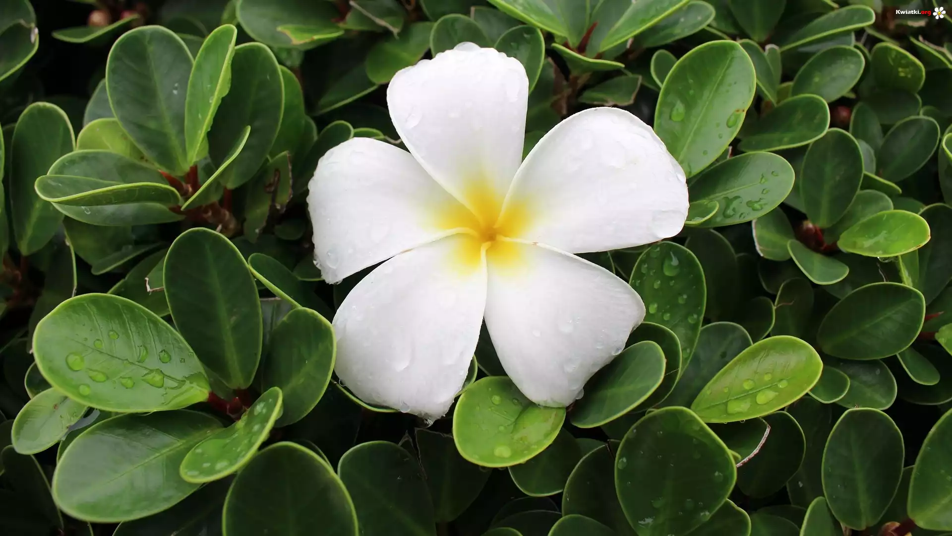 Kwiat, Plumeria, Zielone, Liście, Krople - Zdjęcia