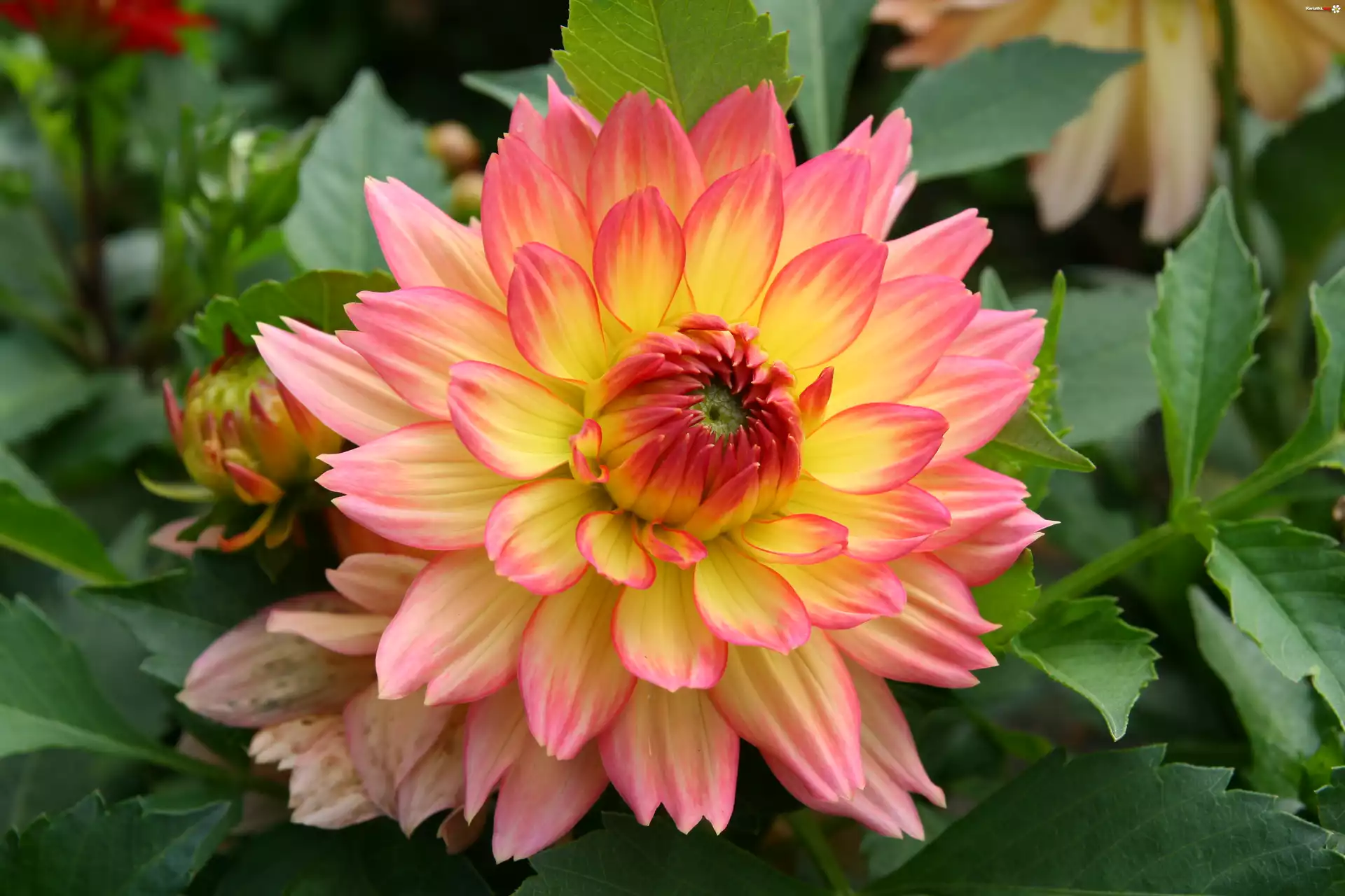 Kwiat, Dalia, Pąk, Liście - Zdjęcia