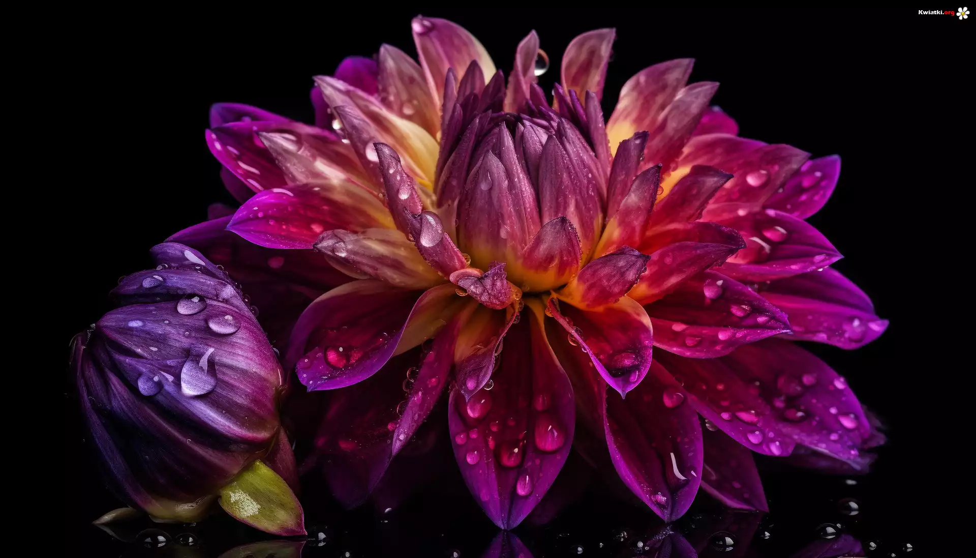 Kwiat Dalia, Kwiat, Pąk, Krople, Grafika