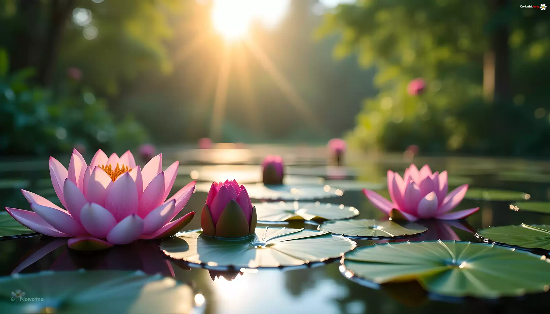 Różowe, Lilie wodne, Kwiaty, Grafika, Światło słoneczne Kwiat - Zdjęcia