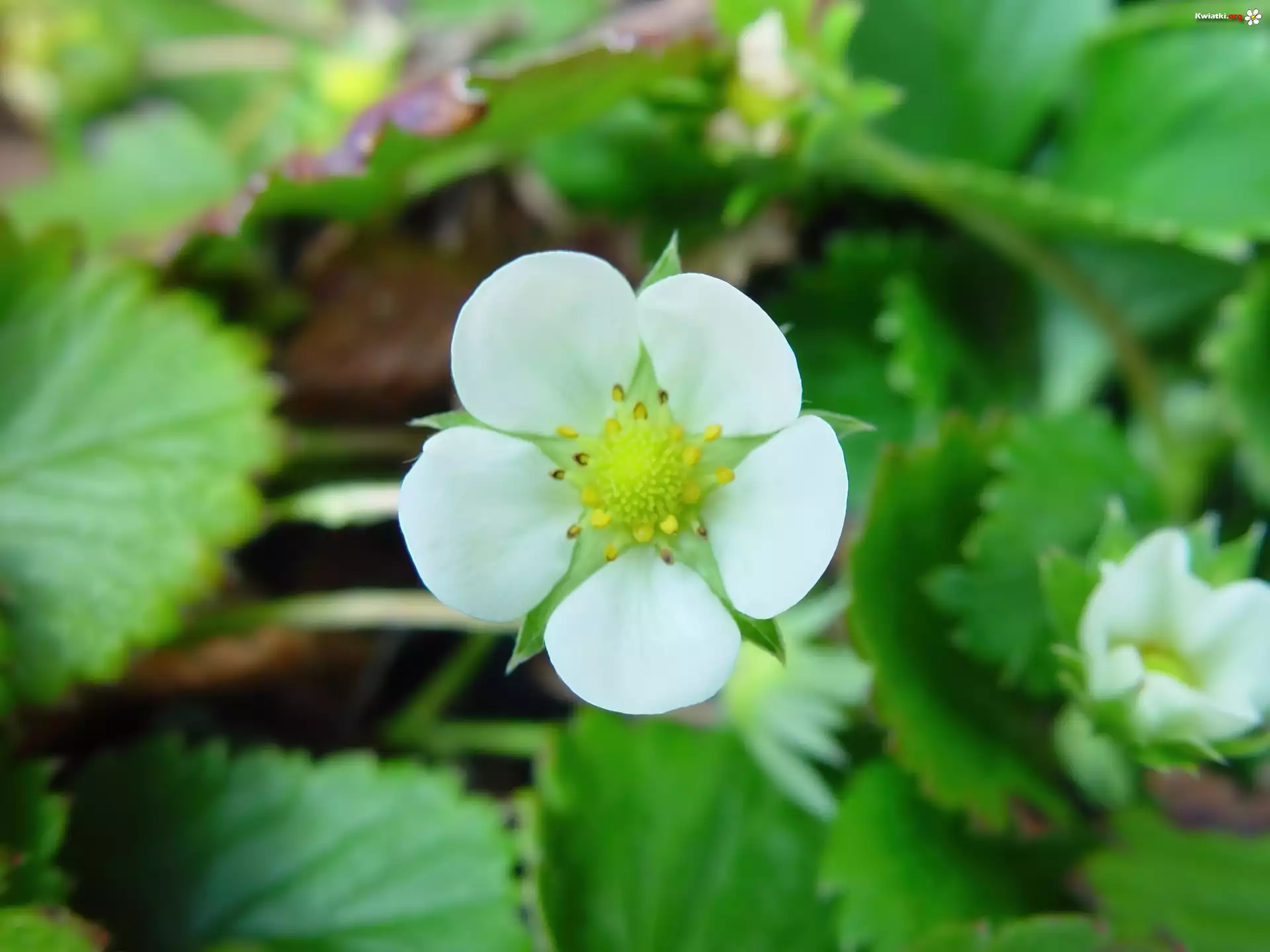 Biały, Kwiatek, Poziomki - Zdjęcia