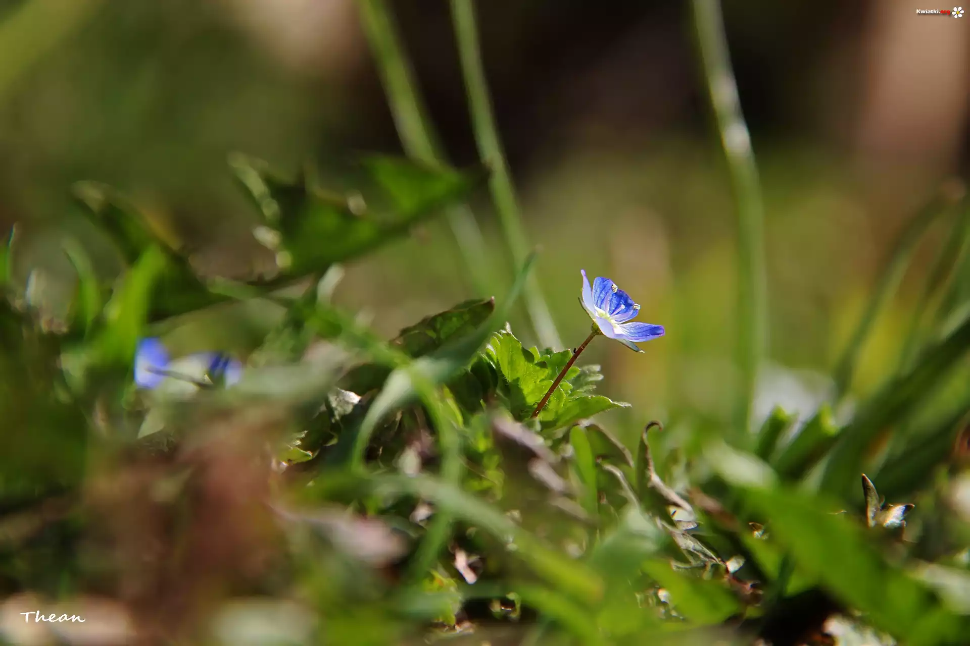 Niebieski, Kwiatek, Trawa - Zdjęcia