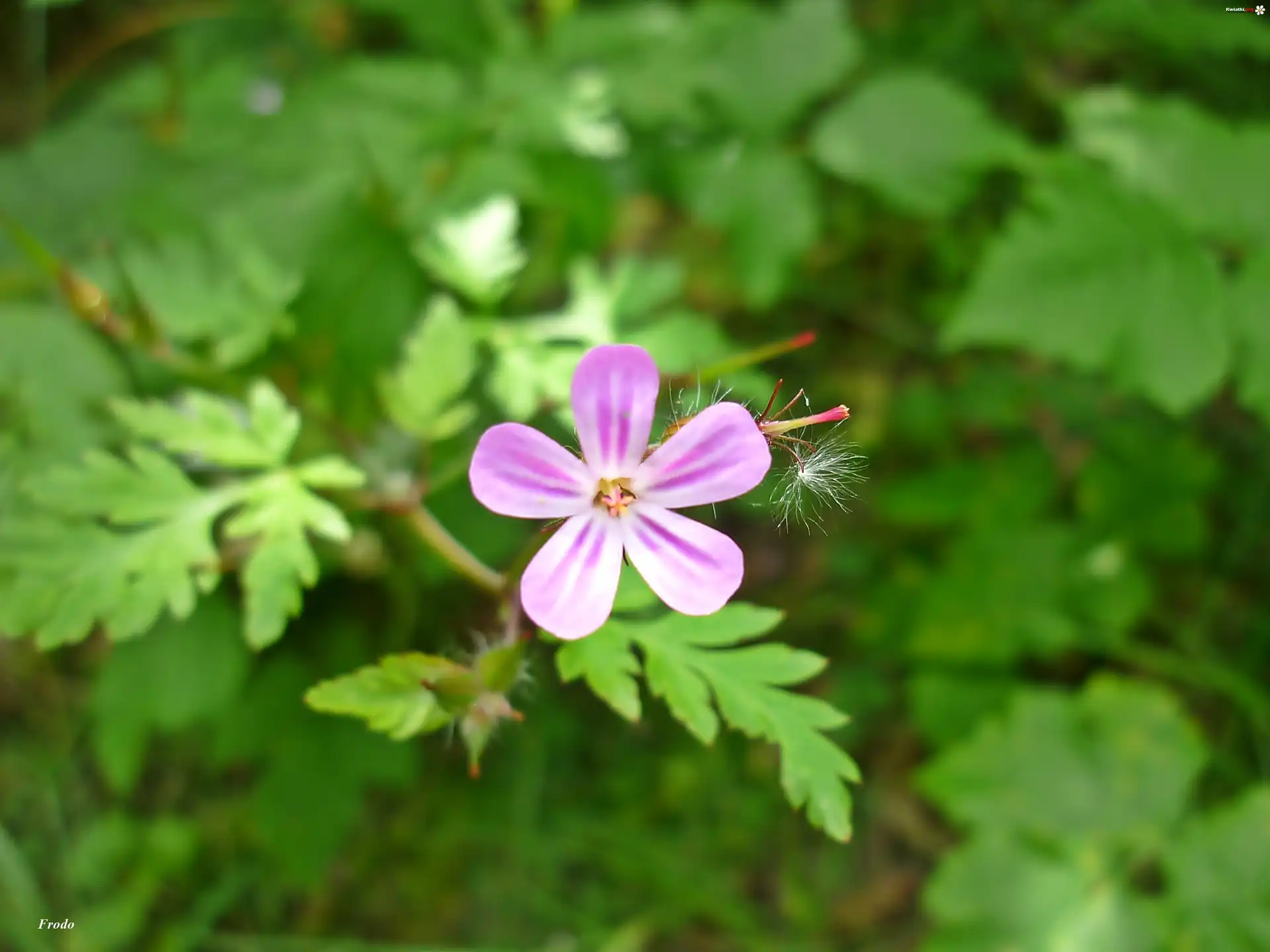 Kwiat Ślaz, Biało-Fioletowy, Zielone, Listki