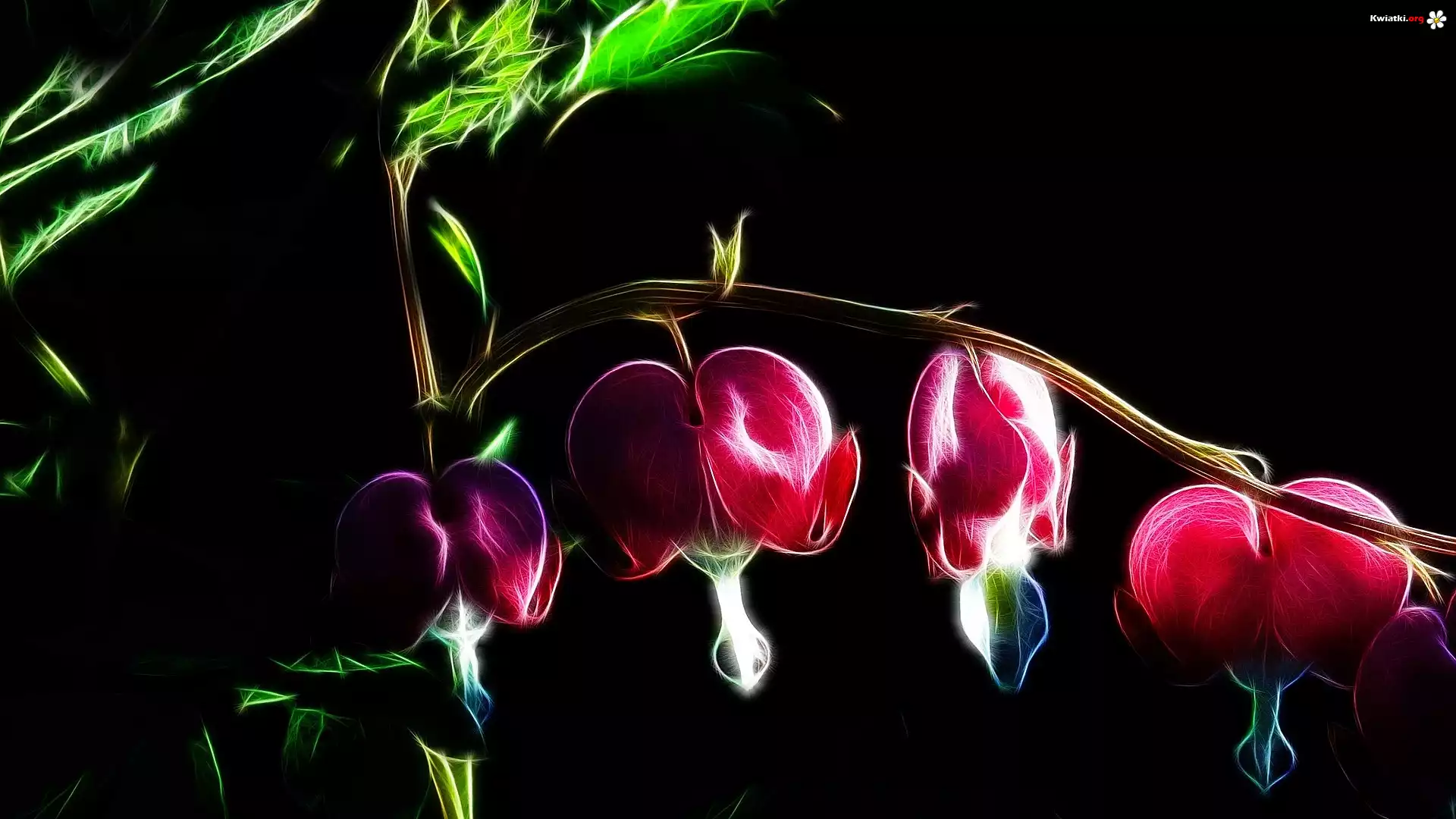 Różowe, Kwiatki, Serduszka okazałe, Gałązka, Czarne, Tło, Fractalius - Zdjęcia