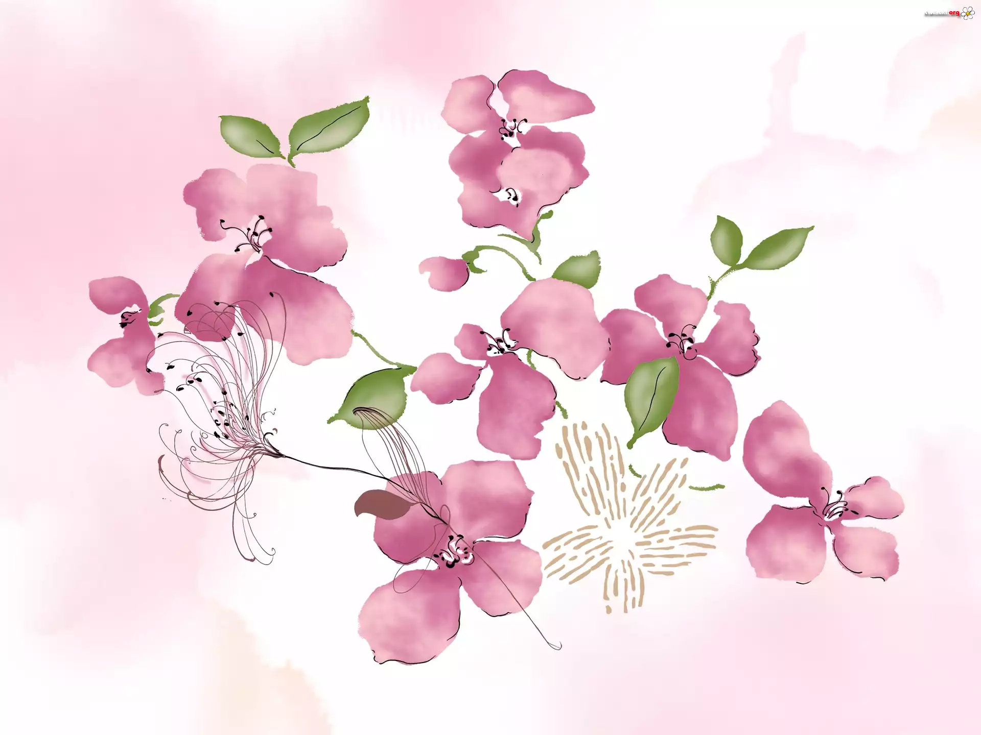Różowe, Kwiatki, Malowane - Zdjęcia