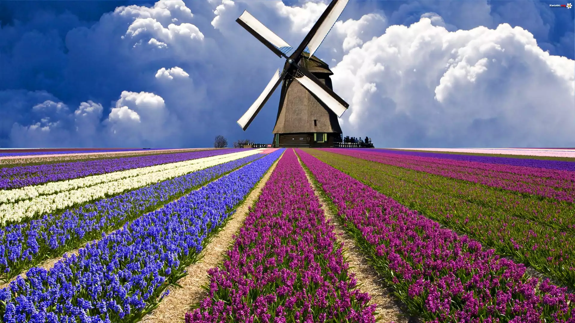 Pola, Kwiatowe, Wiatrak - Zdjęcia