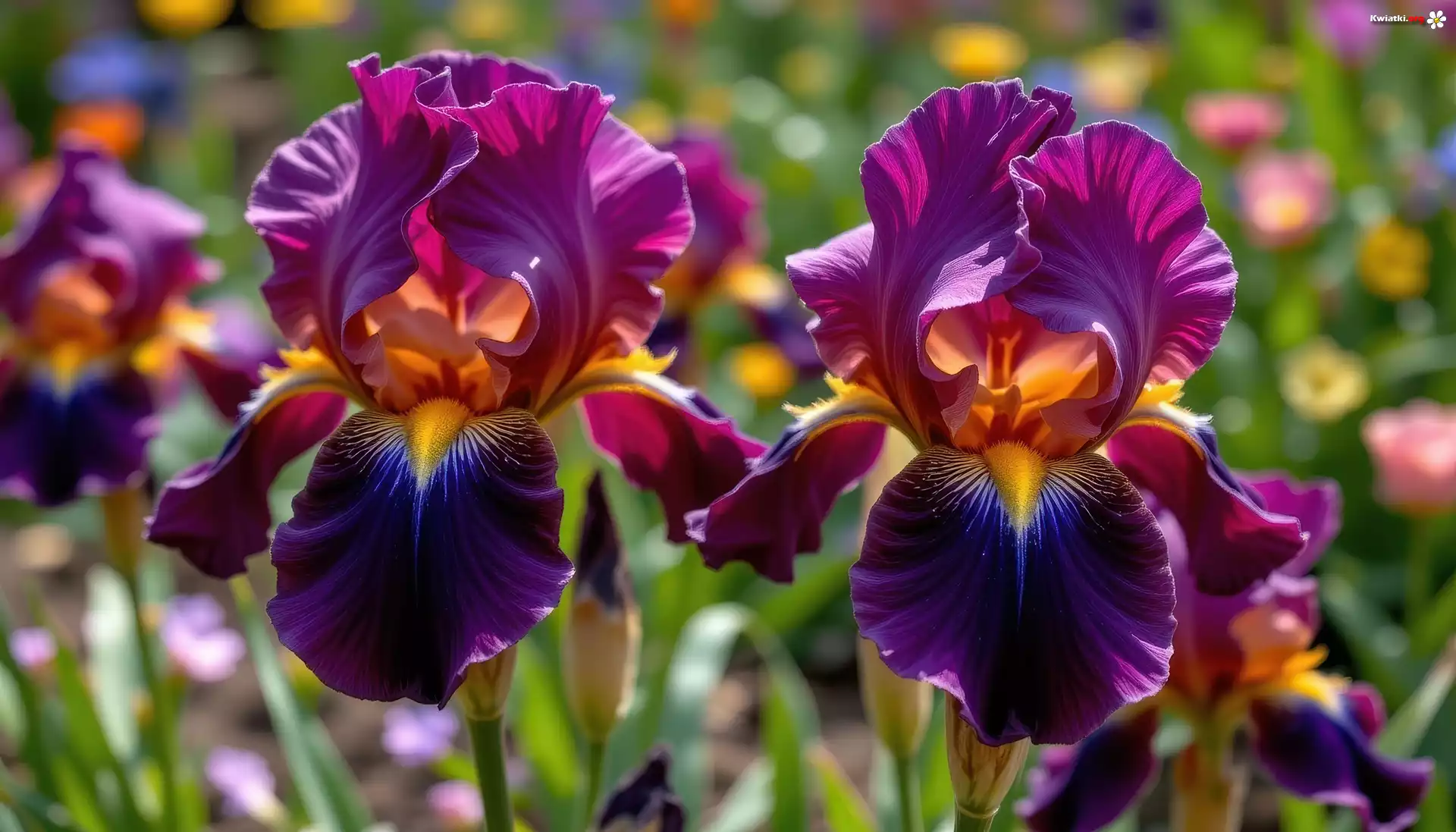 Kwiat Fioletowe, Dwa, Irysy, Kwiaty, Grafika AI