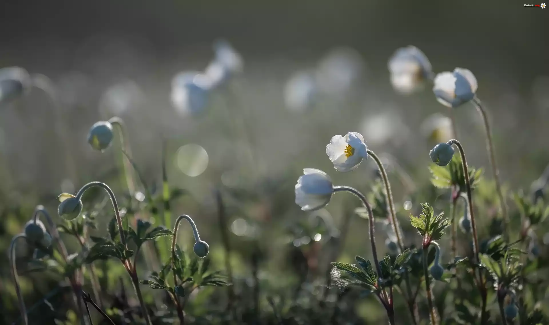 Białe, Kwiaty, Sasanki - Zdjęcia