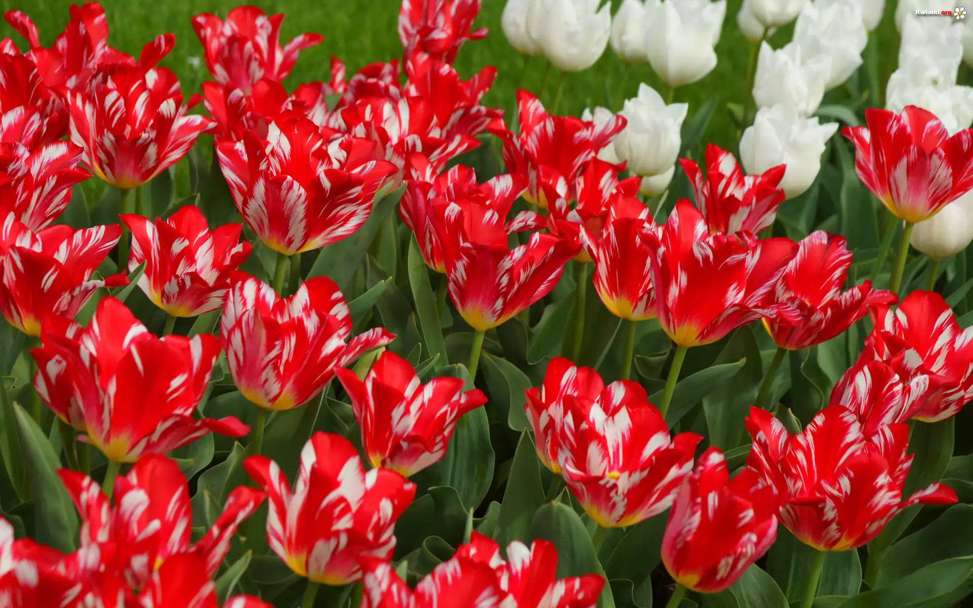 Kwiaty, Tulipany, Biało-czerwone - Zdjęcia