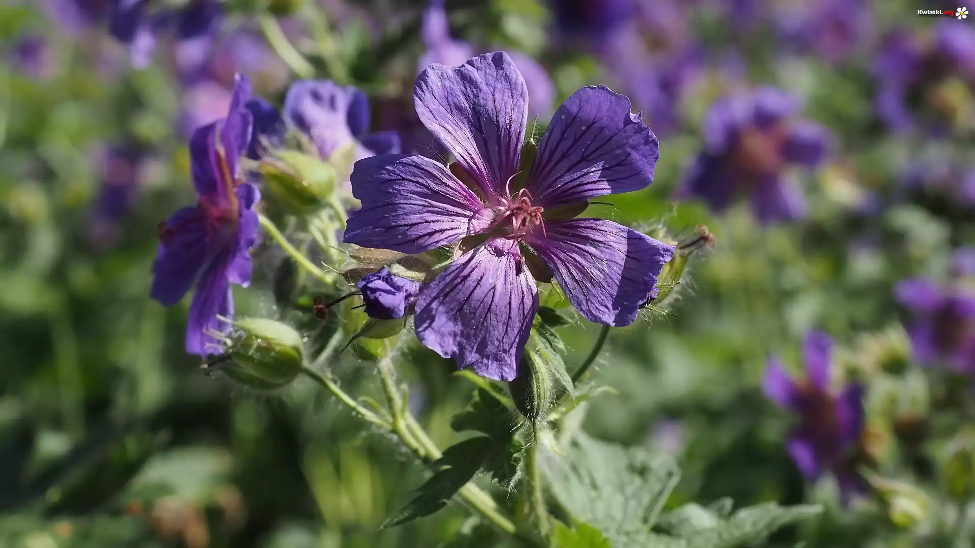 Kwiaty, Fioletowe, Bodziszek, Liście - Zdjęcia