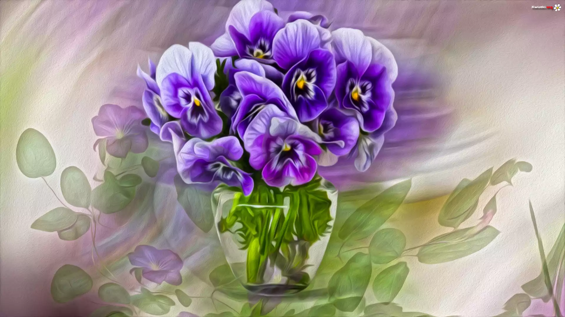 Kwiaty, Fioletowe, Bratki, Grafika - Zdjęcia