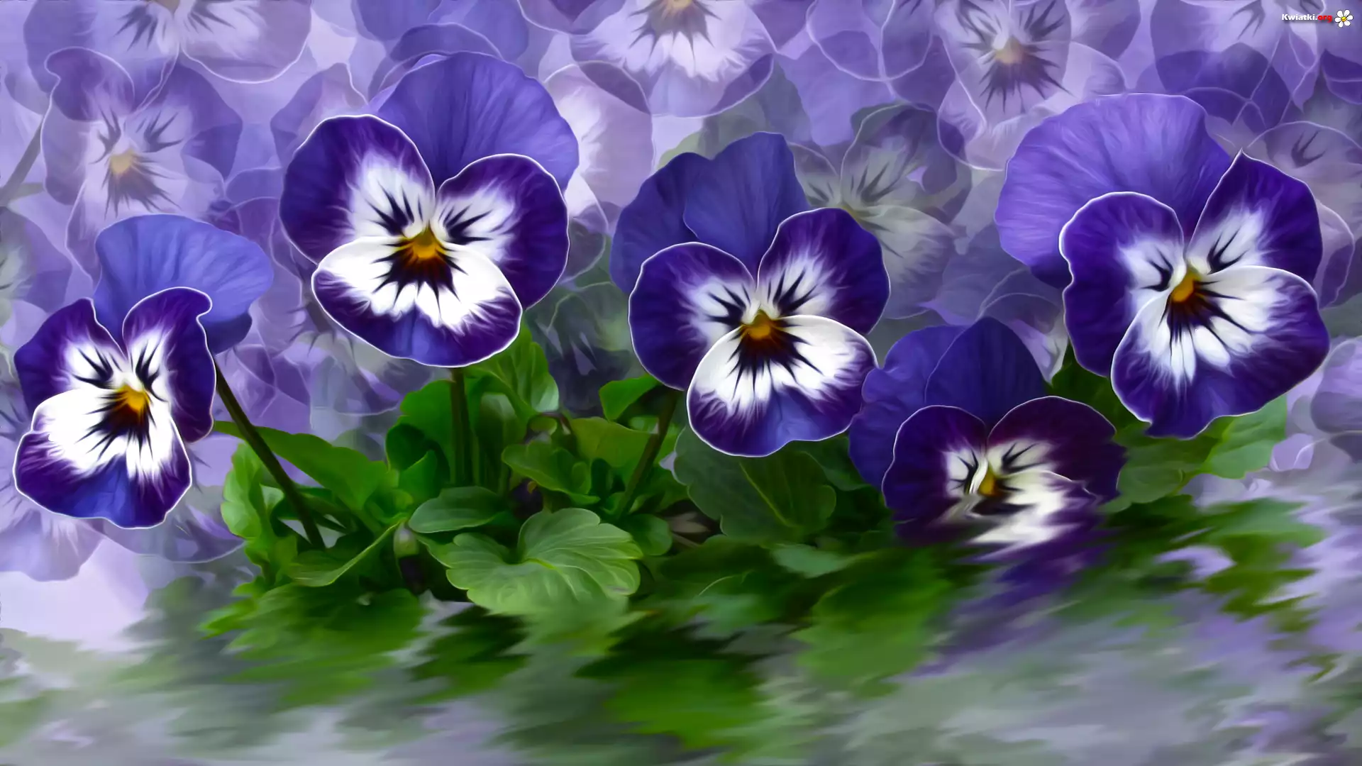 Kwiaty, Niebieskie, Bratki, Grafika - Zdjęcia