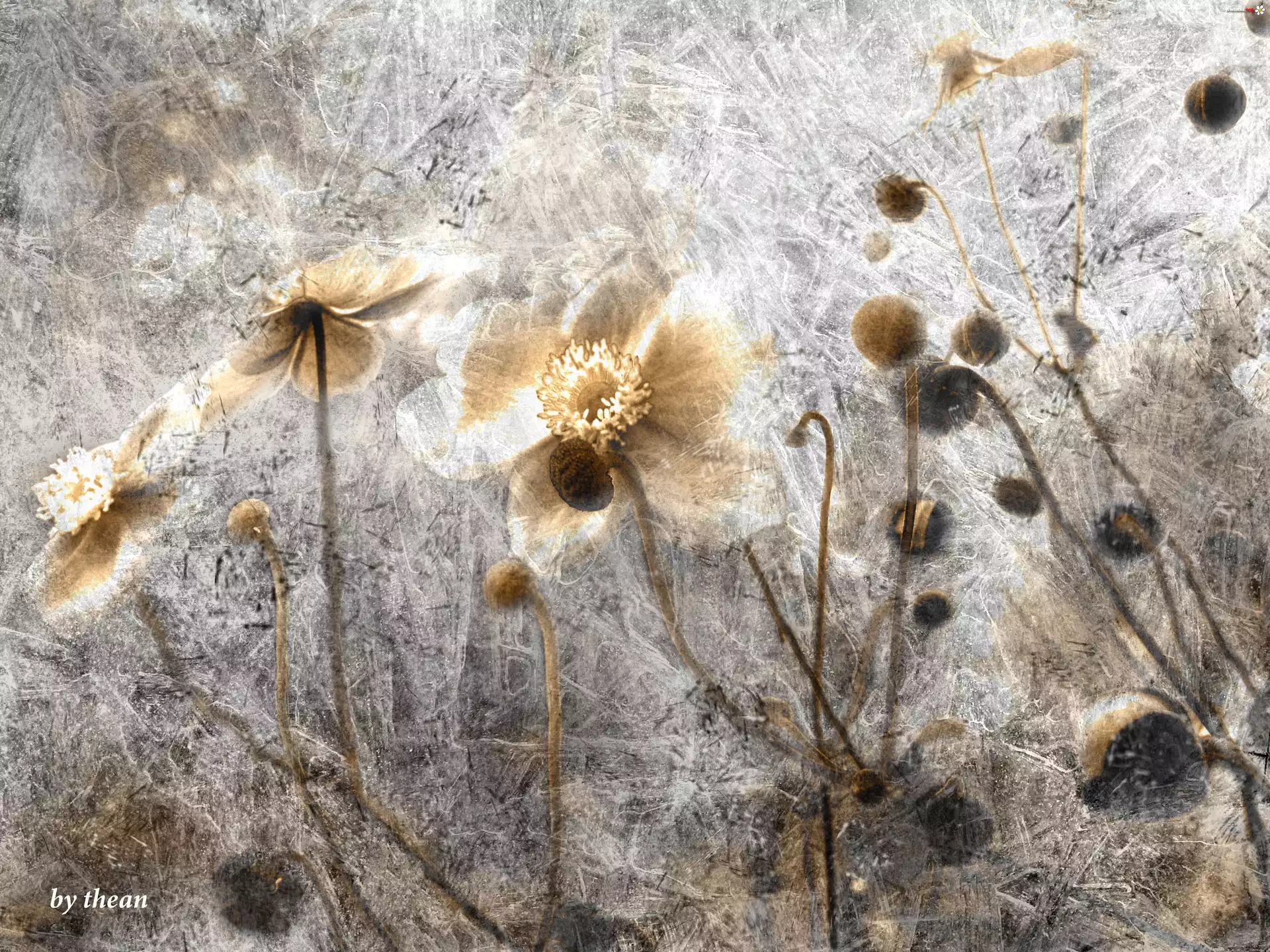 Kwiaty, Odcienie, Brązu, Grafika - Zdjęcia