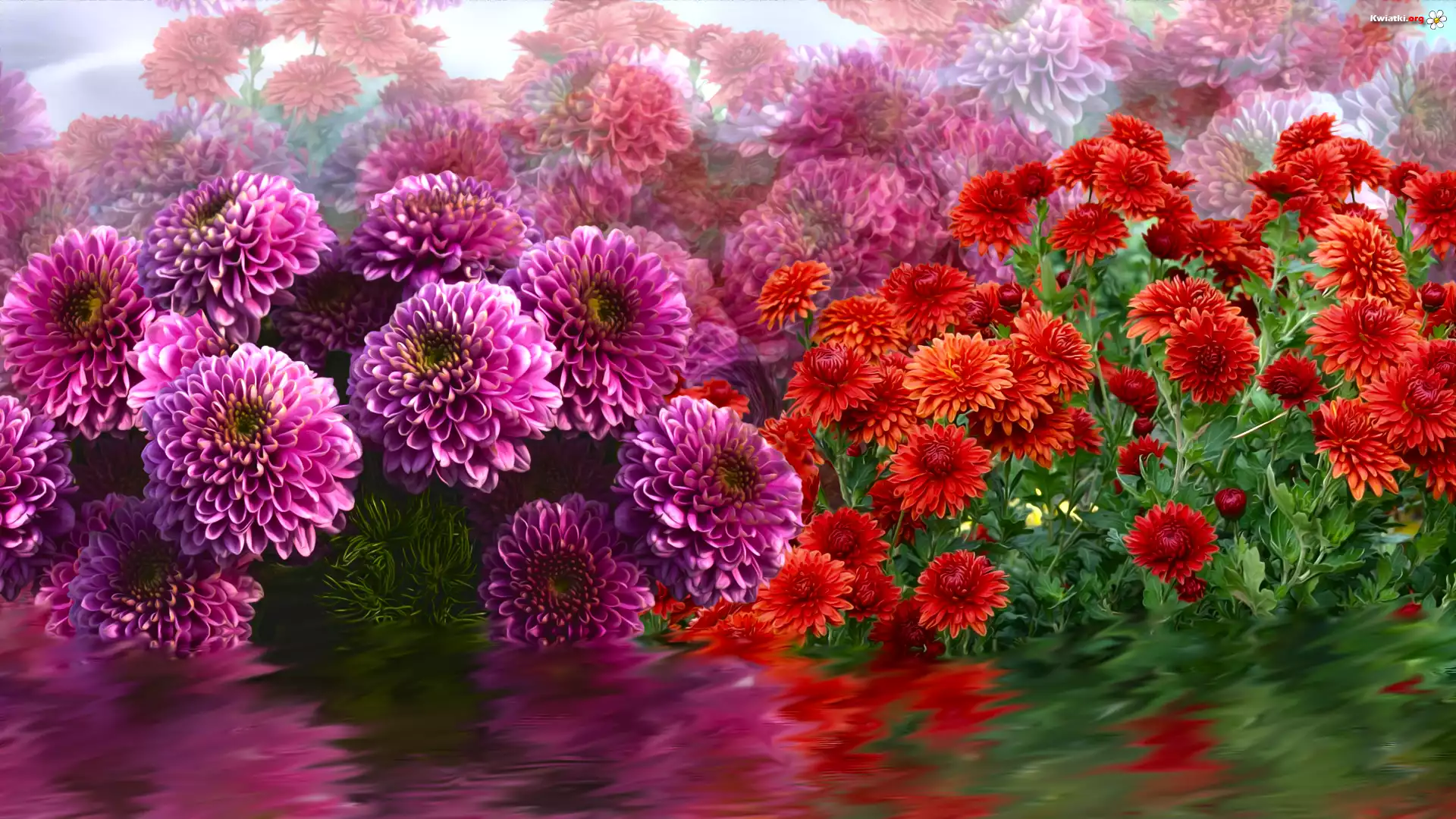 Kwiaty, Dalie, Chryzantemy, Grafika - Zdjęcia